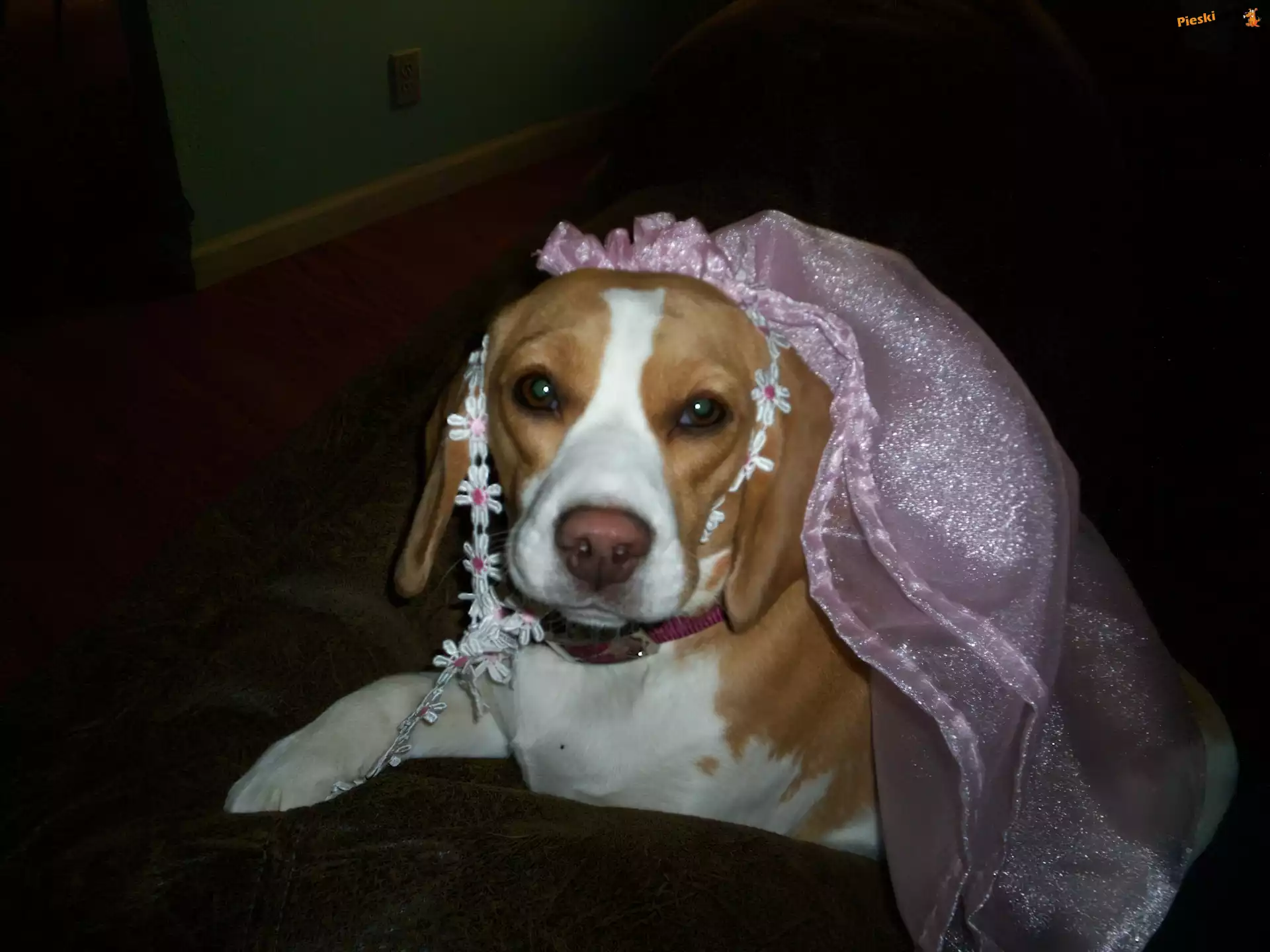 Beagle Harrier, różowy, welon