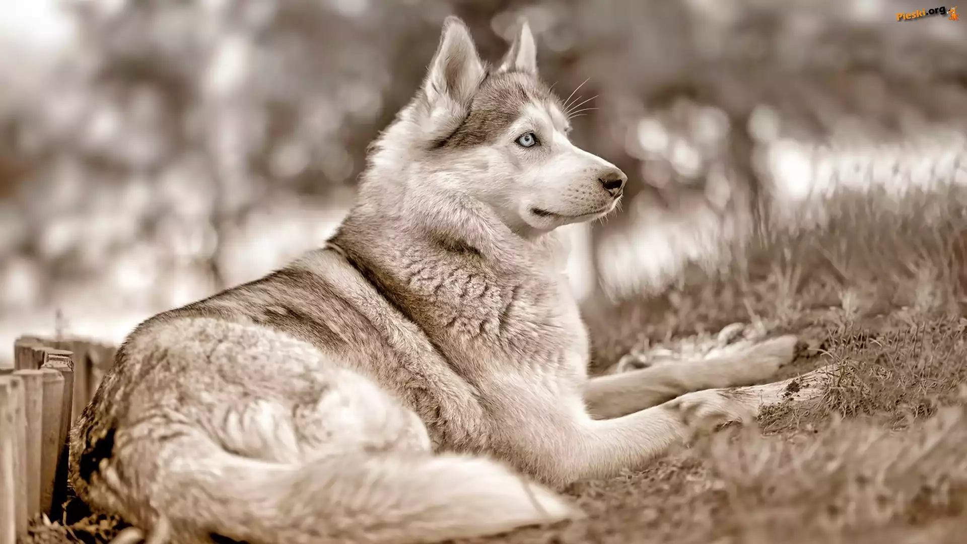 Białe, Husky, Siberian, Czarno, Rozmycie