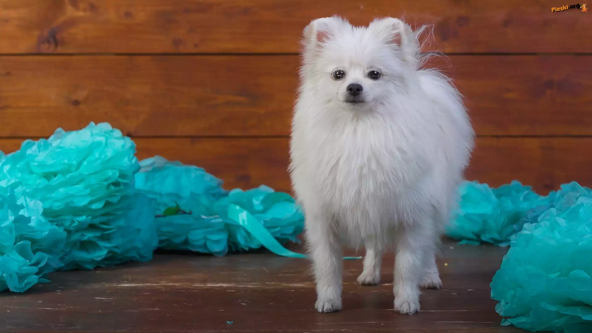 Biały, Szpic miniaturowy, Deski, Pieski