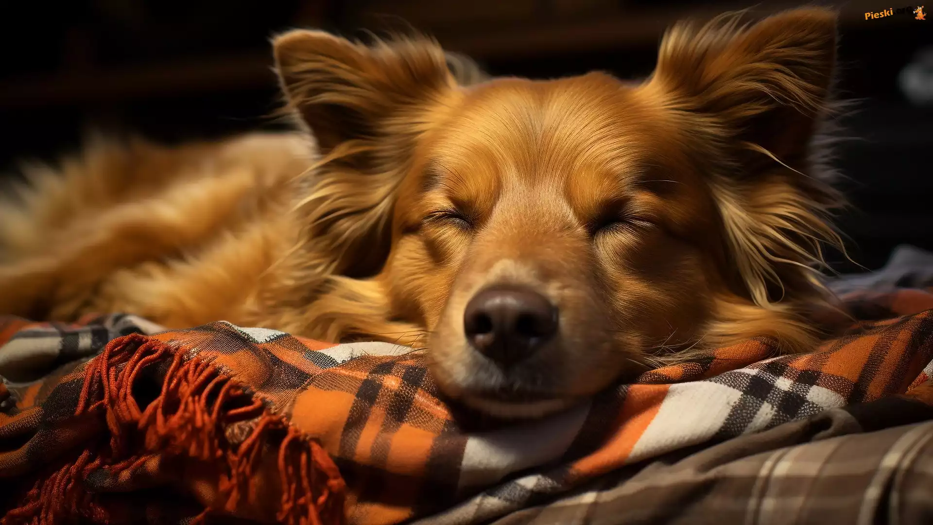 Pies, Grafika AI, Brązowy, Koc, Śpiący