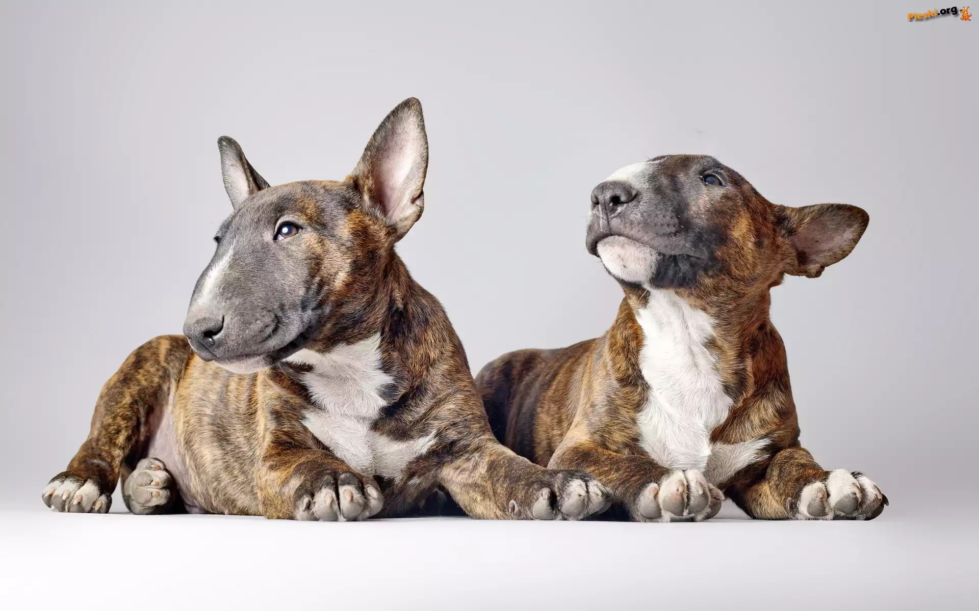 Język, Bulterier, Biały, Głowa, Łata Biały, Bulterier Pień, Bulterier, Pies, Skok, Kłoda Biały, Bulterier, Trawnik Pies, Bulterier Kwiaty, Pies, Bulterier, Ścieżka Pies, Bulterier, Dywan Bulteriery Ściółka, Bulterier, Pies, Pień, Las