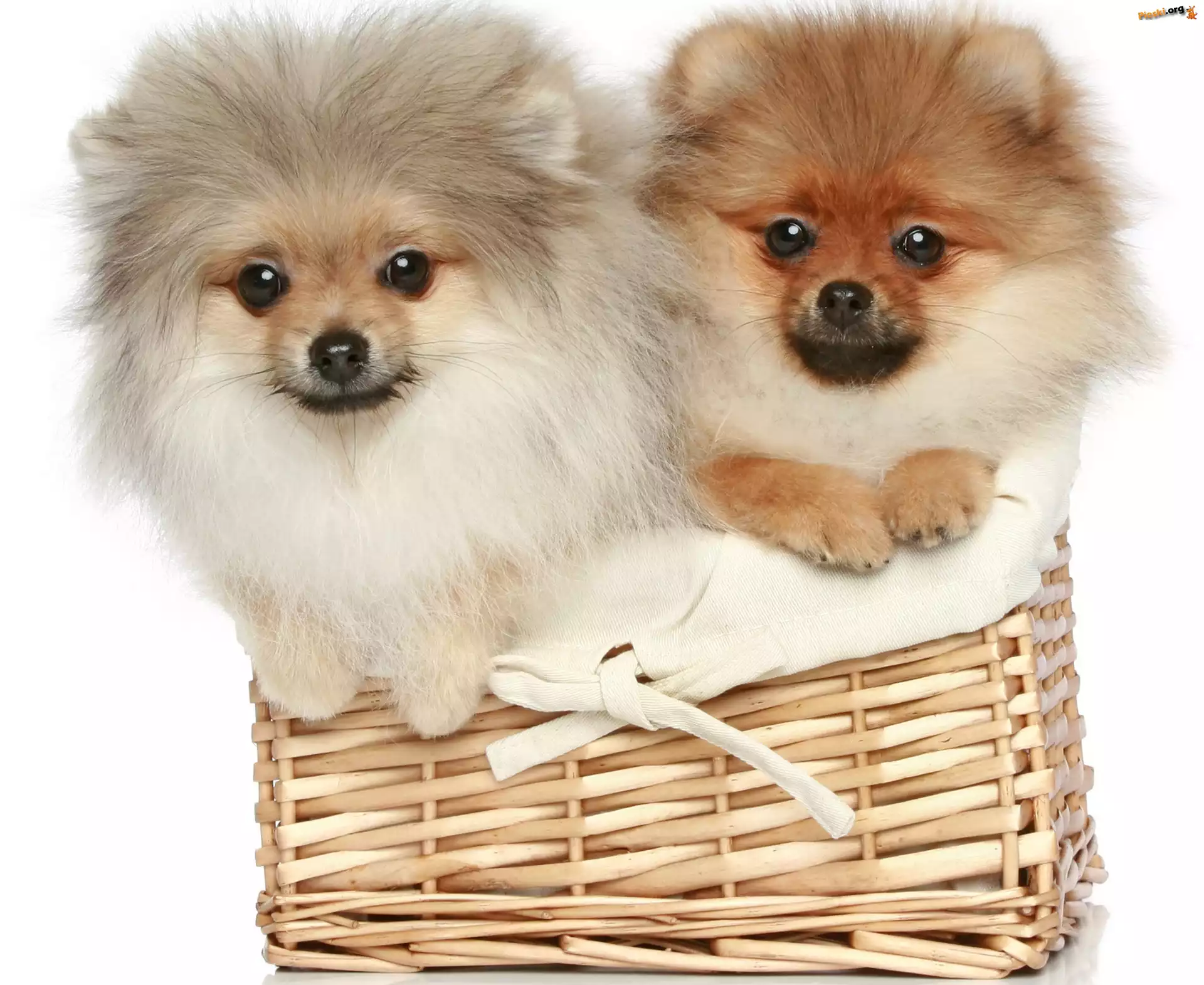 Szpice miniaturowe, Psy, Koszyk, Pomeraniany, Pieski