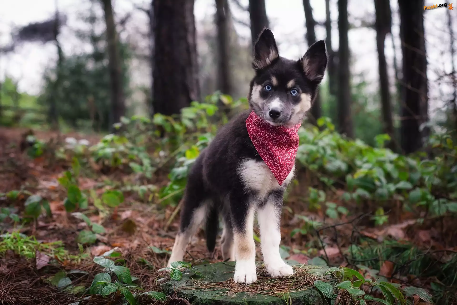 Czerwona, Pies, Szczeniak, Chustka, Pieski