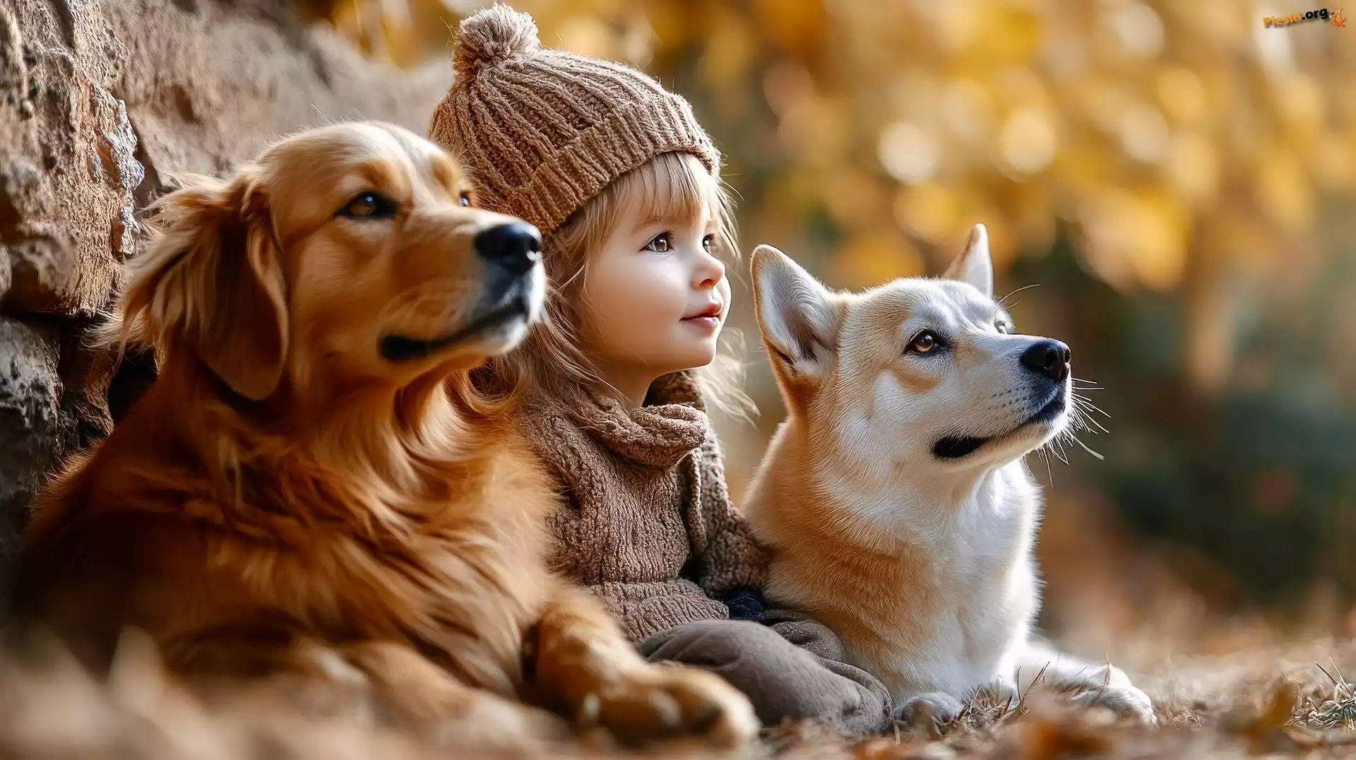 Psy, Dwa, Dziecko, Dziewczynka, Pieski