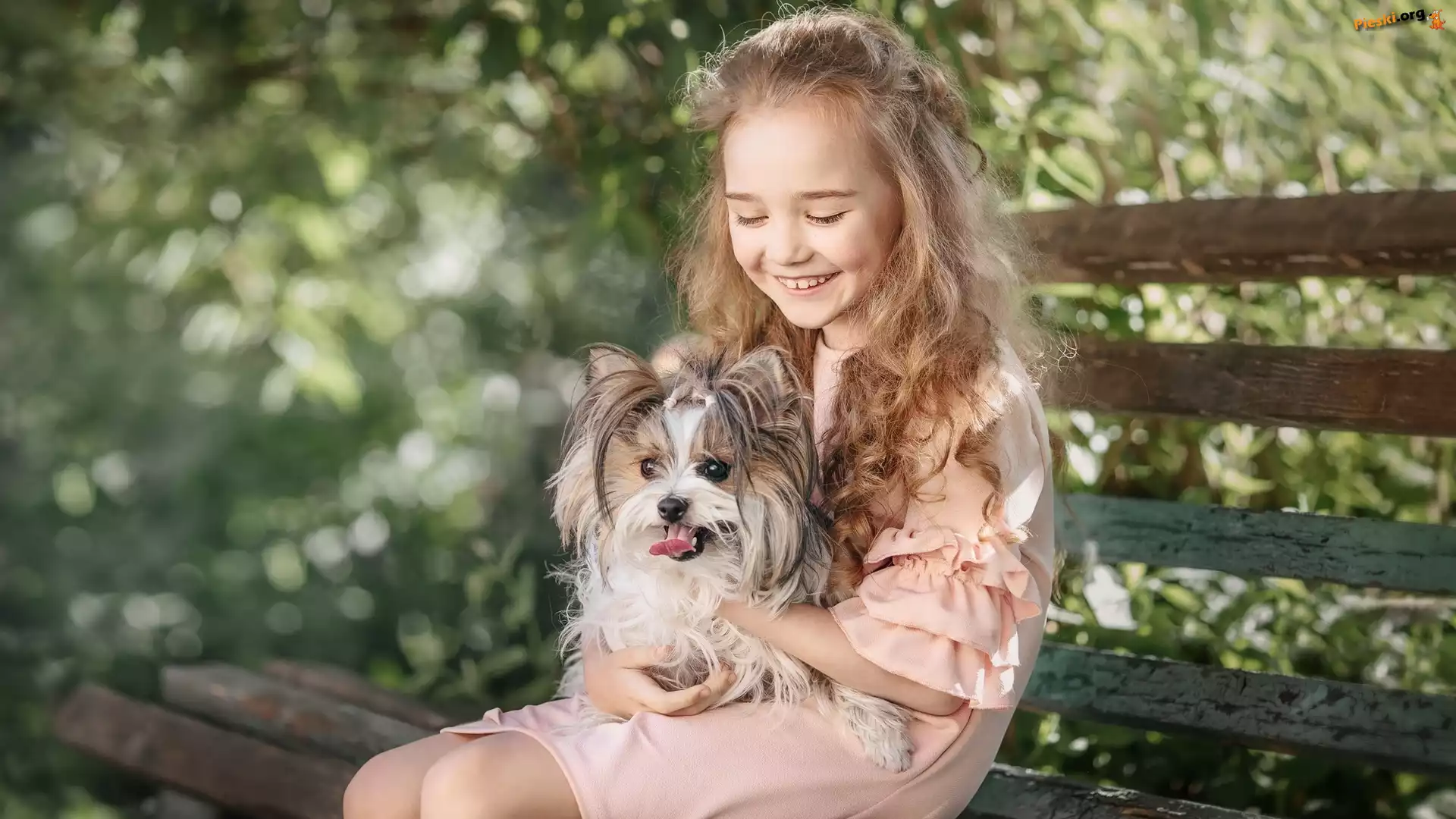 Dziewczynka, Pies, Yorkshire terrier, Pieski