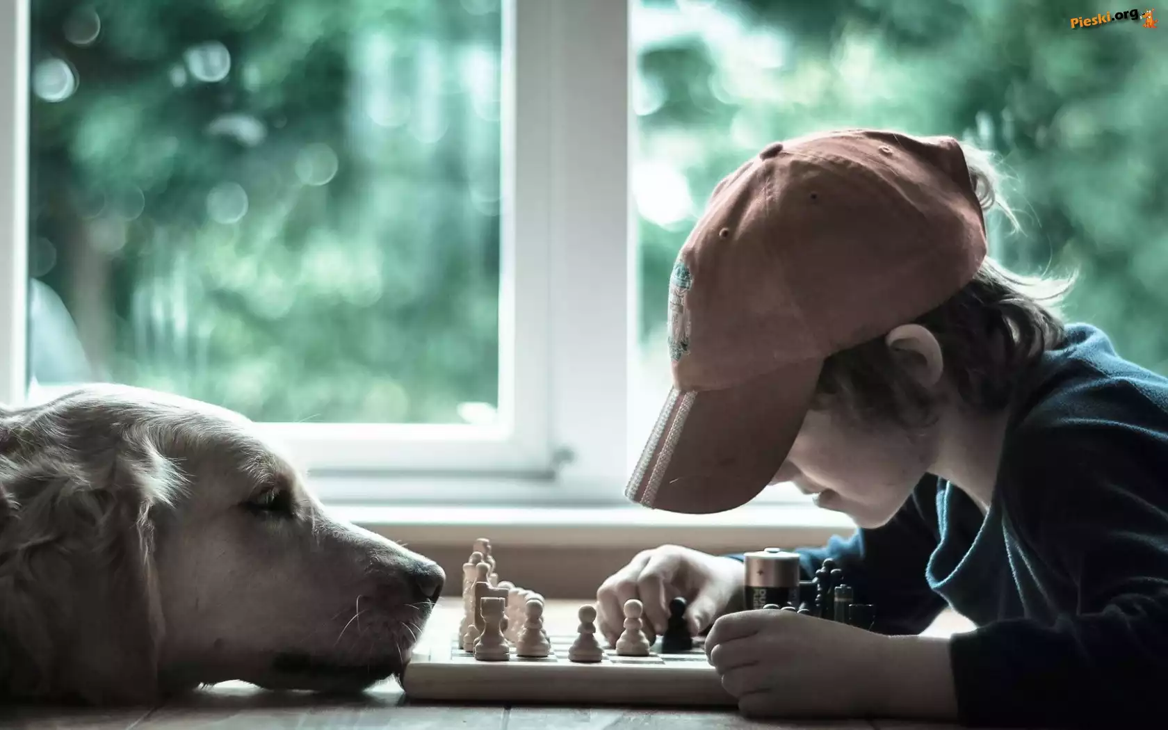 Golden Retriever, Chłopiec, Szachy