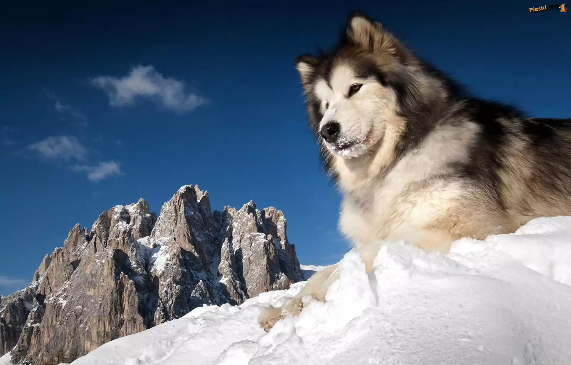 Góry, Husky, Siberian, Zima, Śnieg