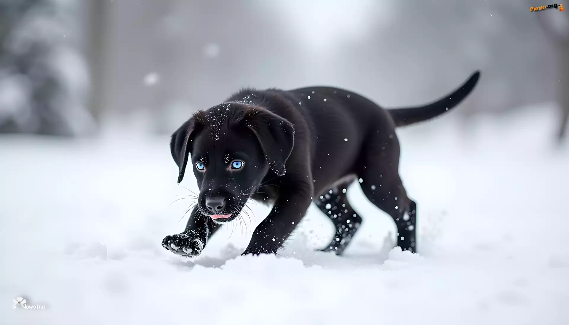 Pies, Grafika, Czarny, Śnieg, Szczeniak, Pieski