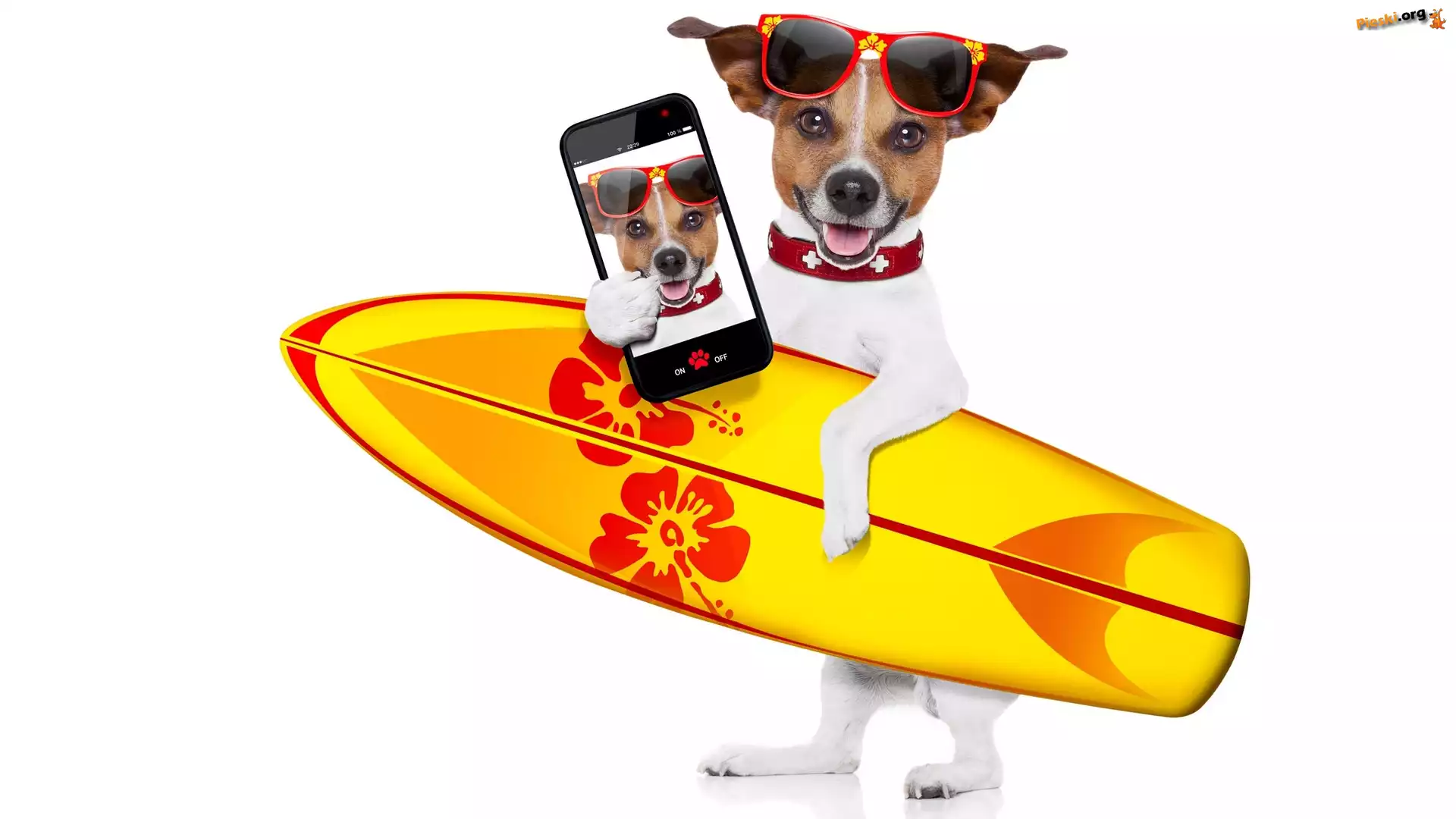 Okulary, Jack Russell terrier, Deska surfingowa, Telefon