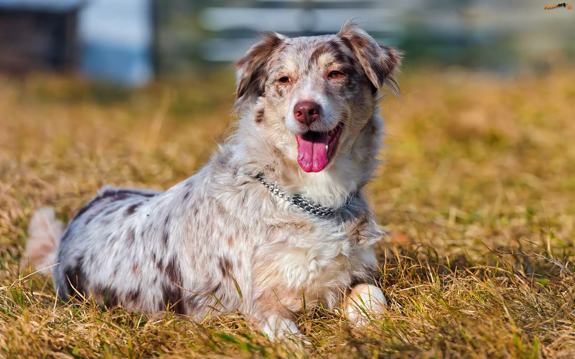 Język, Pies, Owczarek Australijski, Obroża, Pieski