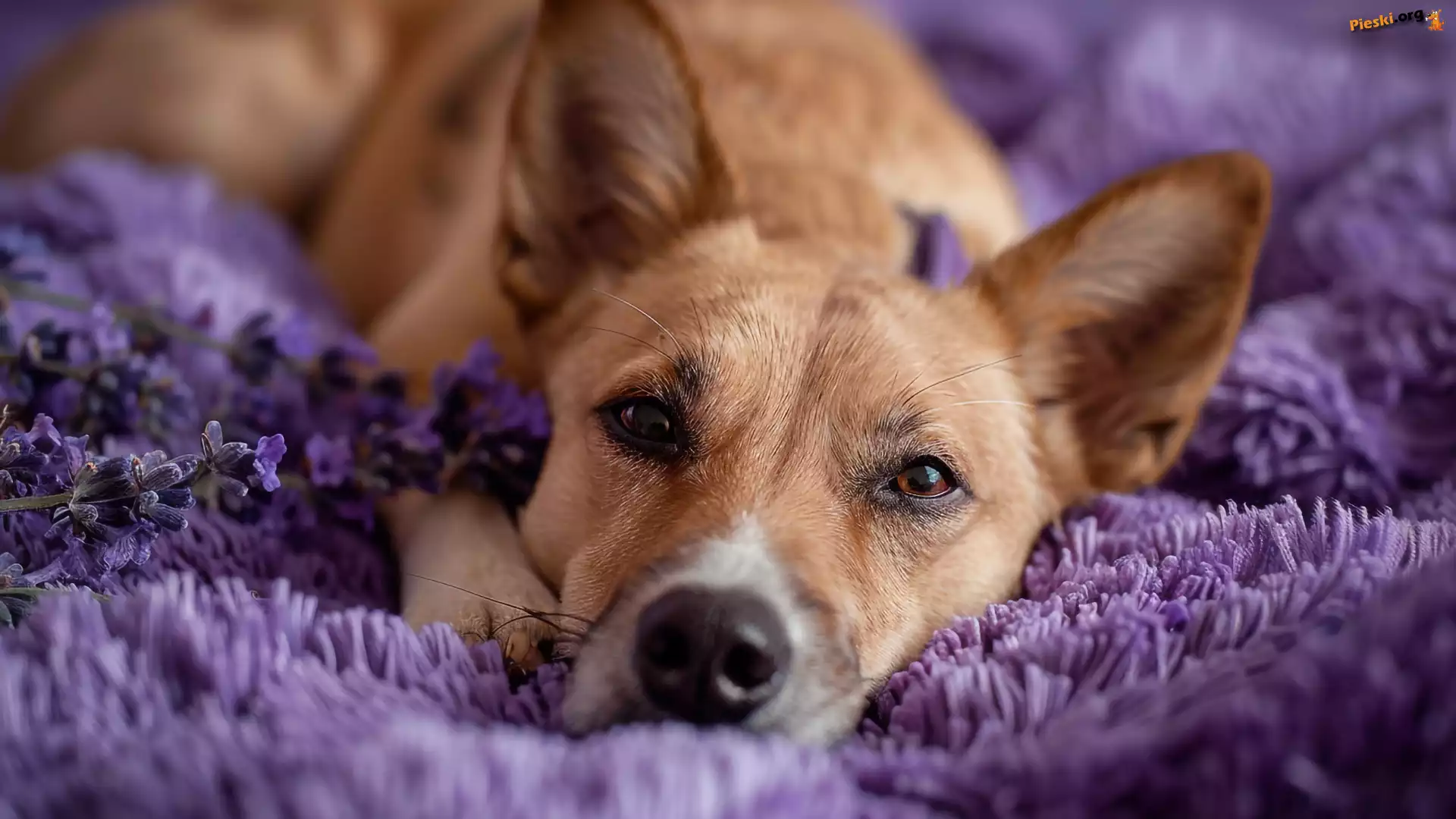 Spojrzenie, Koc, Leżący, Fioletowy, Pies, Pieski