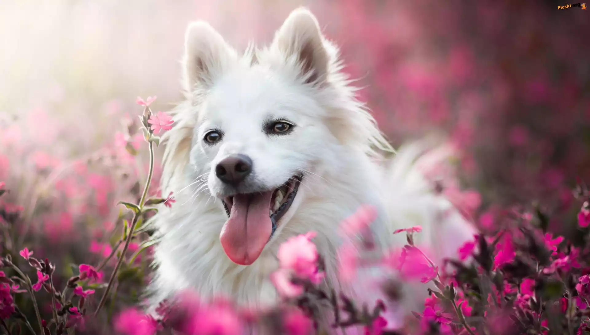 Kwiaty, Biały, Pies, Rozmycie, Pieski