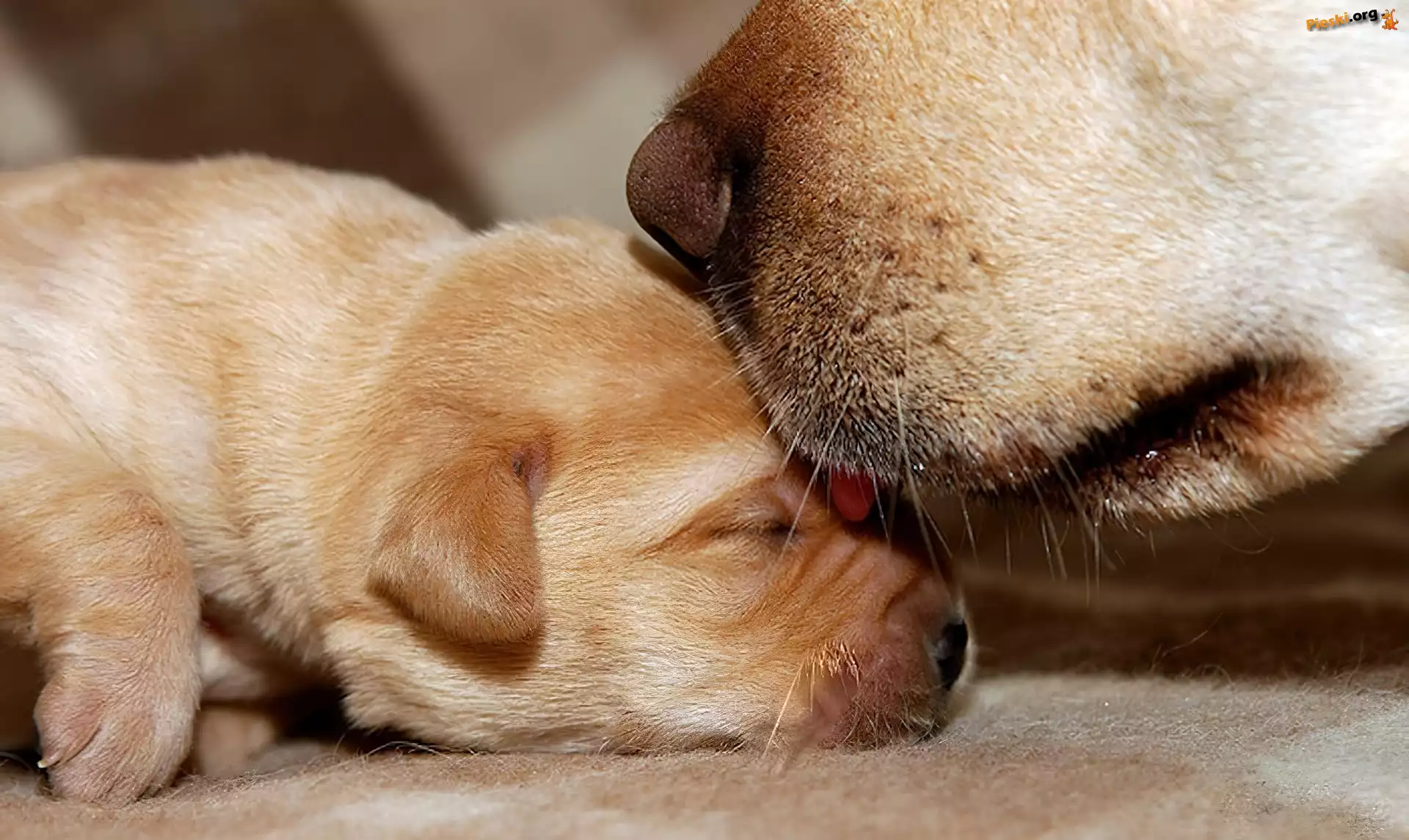 Matka, Golden Retriever, Dwa, Szczeniak, Psy, Pieski