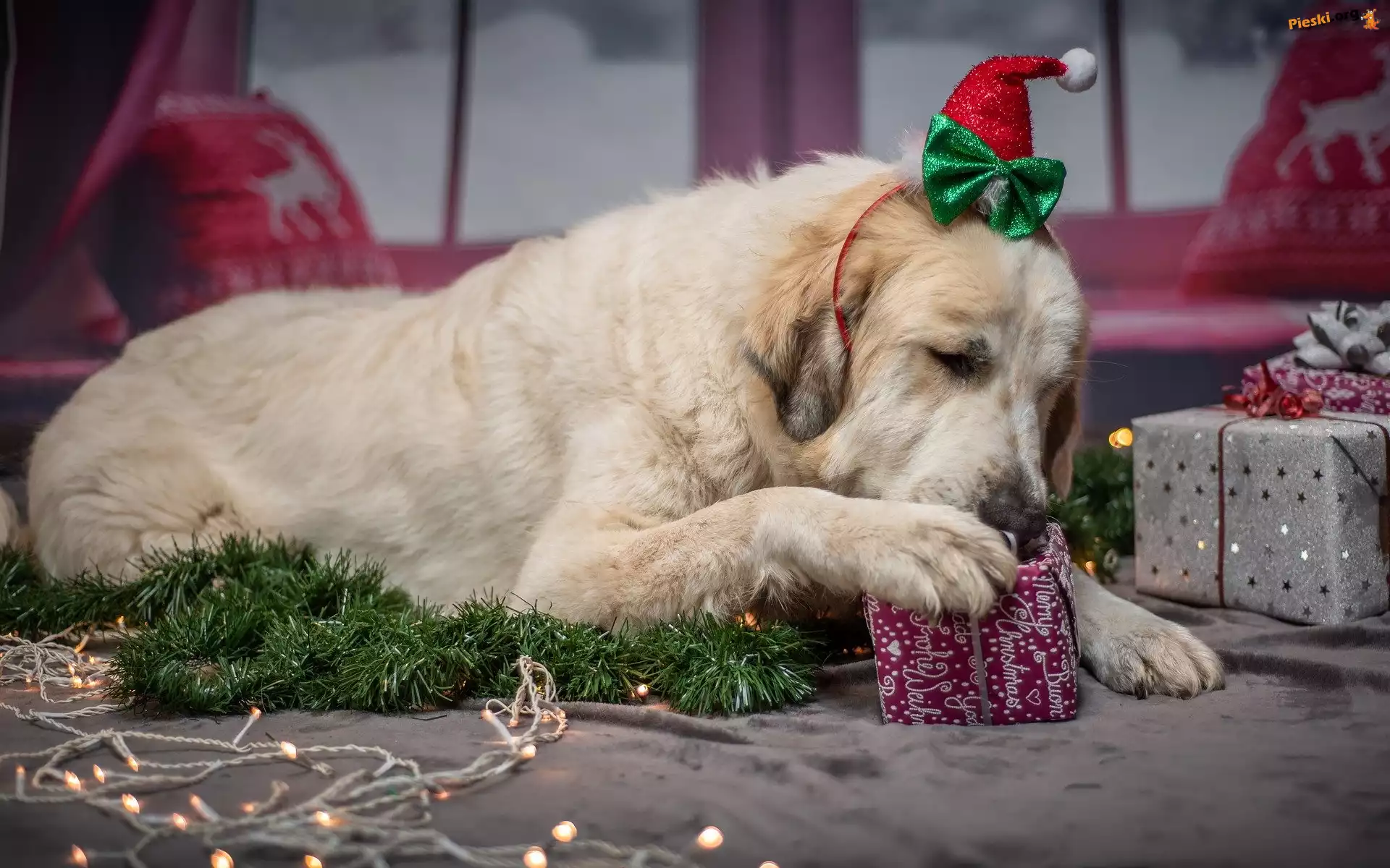 Mikołaja, Pies, Czapka, Prezenty, Pieski