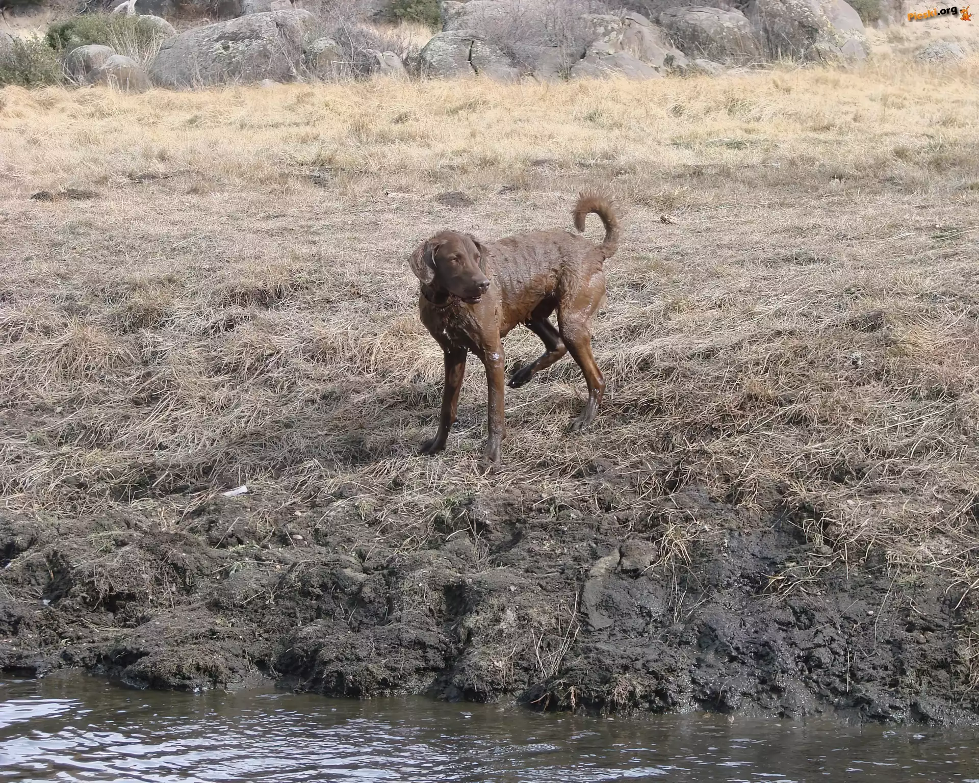 Chesapeake Bay retriever, flaga USA Chesapeake Bay retrievery, mokre, Dwa Brązowy, Chesapeake Bay retriever Chesapeake Bay retriever, niebieska, woda Pysk, Chesapeake Bay retrievera Piękny, duży, Chesapeake Bay retriever Dwa, Chesapeake Bay retrievery, kaczki Mokry, Chesapeake Bay retriever