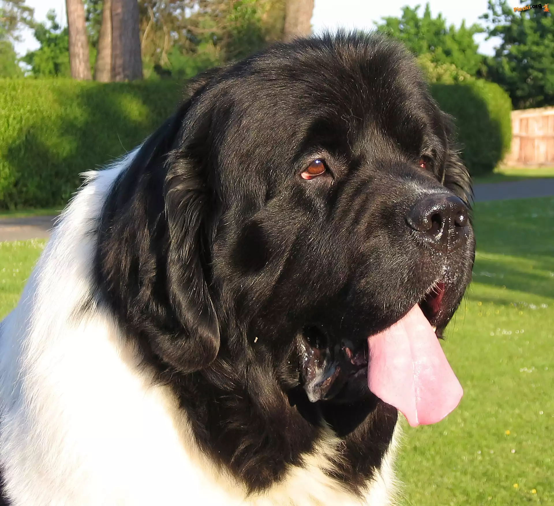 trawa, zielona, Landseer mordka, Landseera pysk, Landseera biegnący, Landseer morda, Landseera kratka, chustki, Landseer trzy, Landseery słodkie, szczeniaki, Landseery Morda, Landseera Kot, Pies, Słodkie biało-czarny, Landseer Piesek, Łąka
