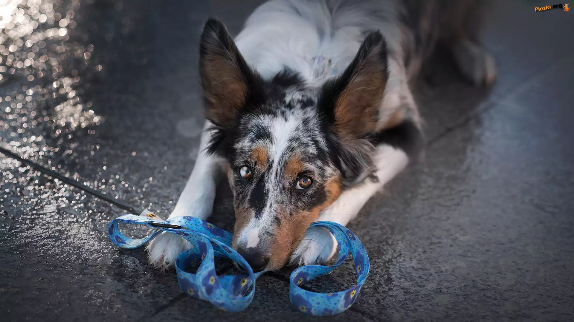 Mordka, Pies, Leżący, Border collie, Smycz, Pieski