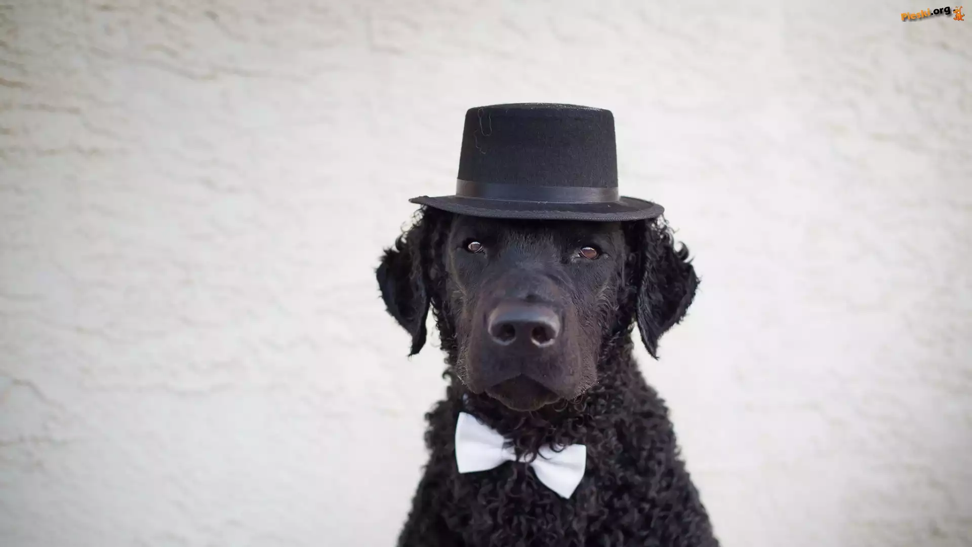 Muszka, Pies, Czarny, Kapelusz, Pieski