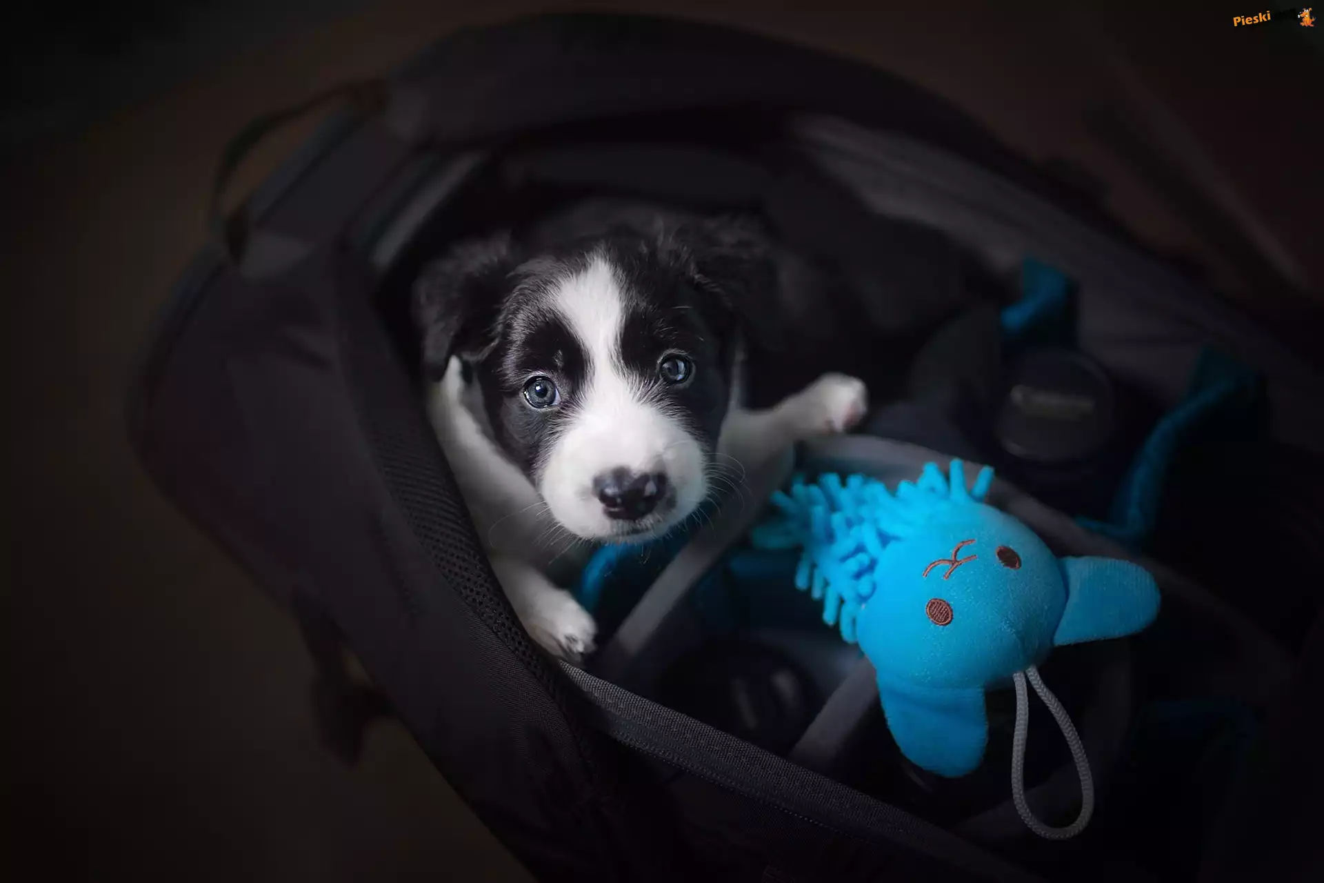 Torba, Niebieska, Border collie, Pies, Szczeniak, Zabawka, Pieski
