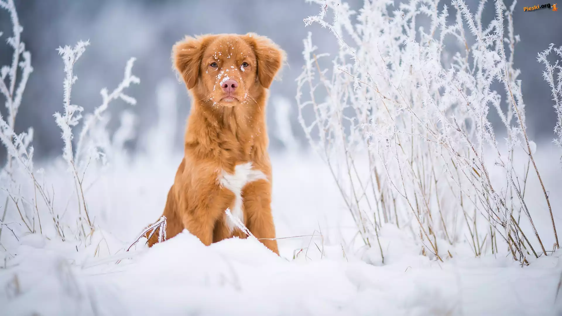 Śnieg, Pies, Retriever z Nowej Szkocji, Rośliny