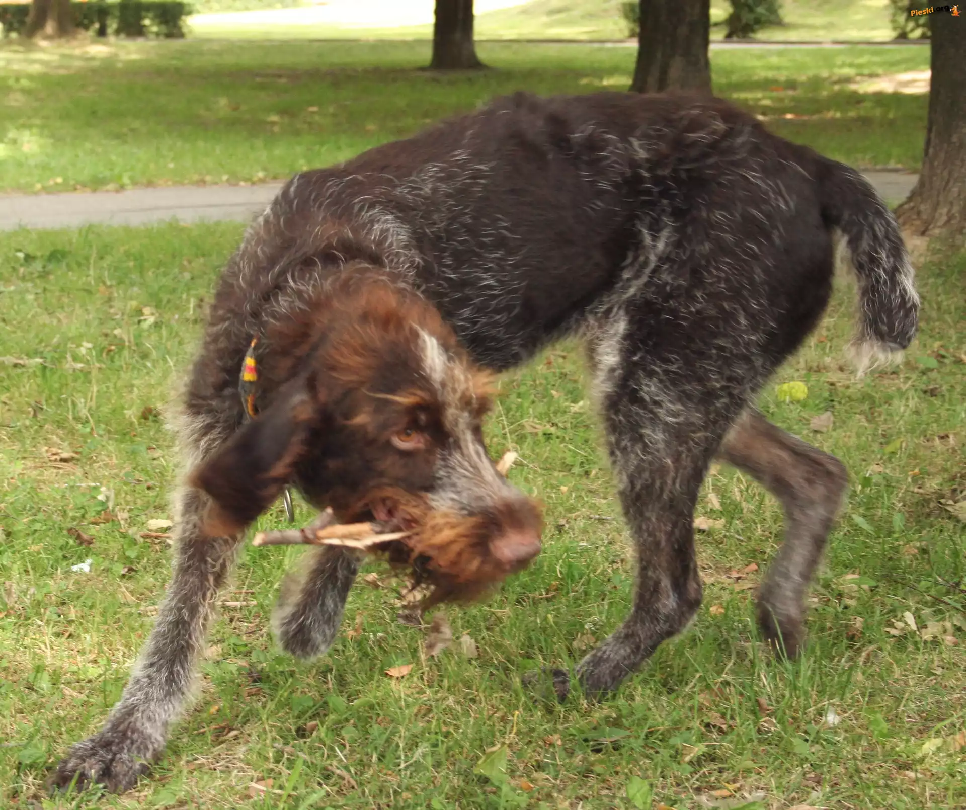 ławka, Wyżeł niemiecki szorstkowłosy, trawa, kij Wyżeł niemiecki szorstkowłosy Sofa, Szczeniaki, Wyżły niemieckie