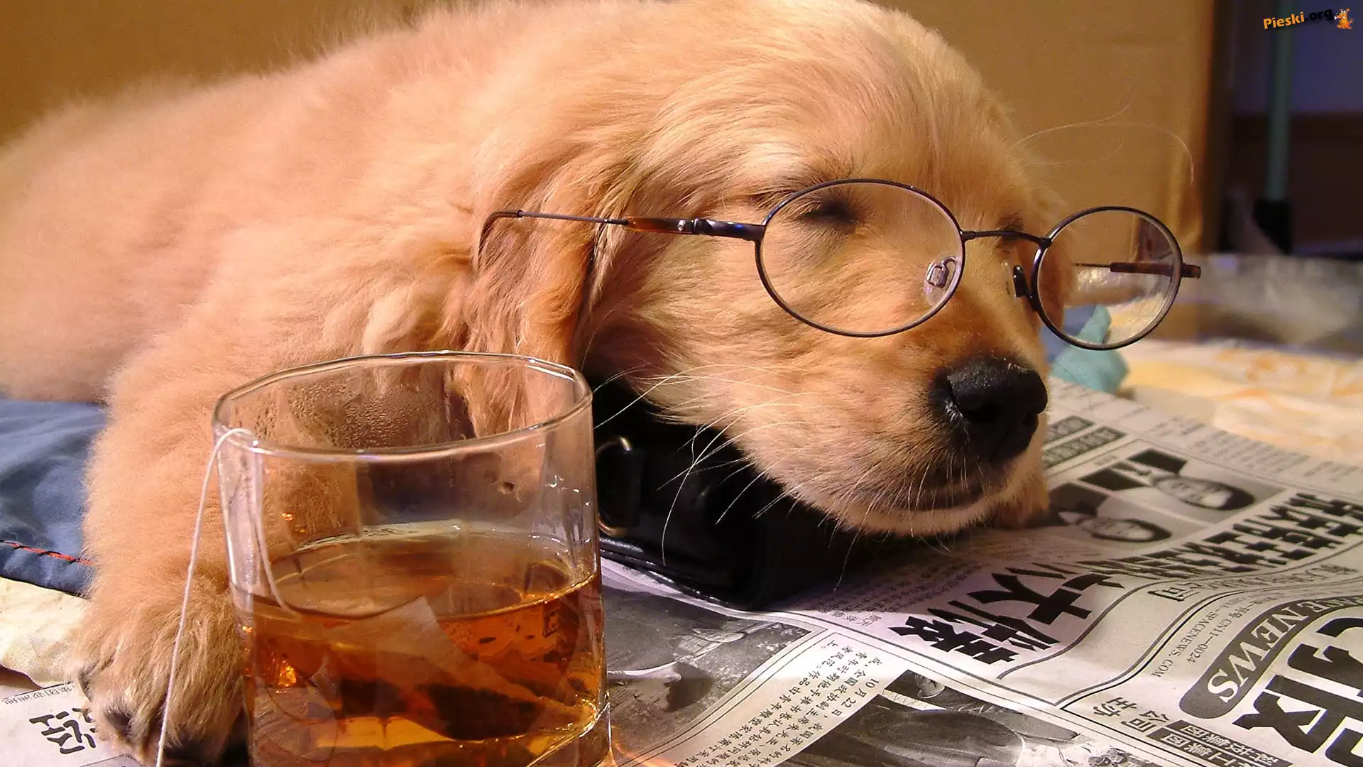 Pies, Okulary, Gazeta, Pieski