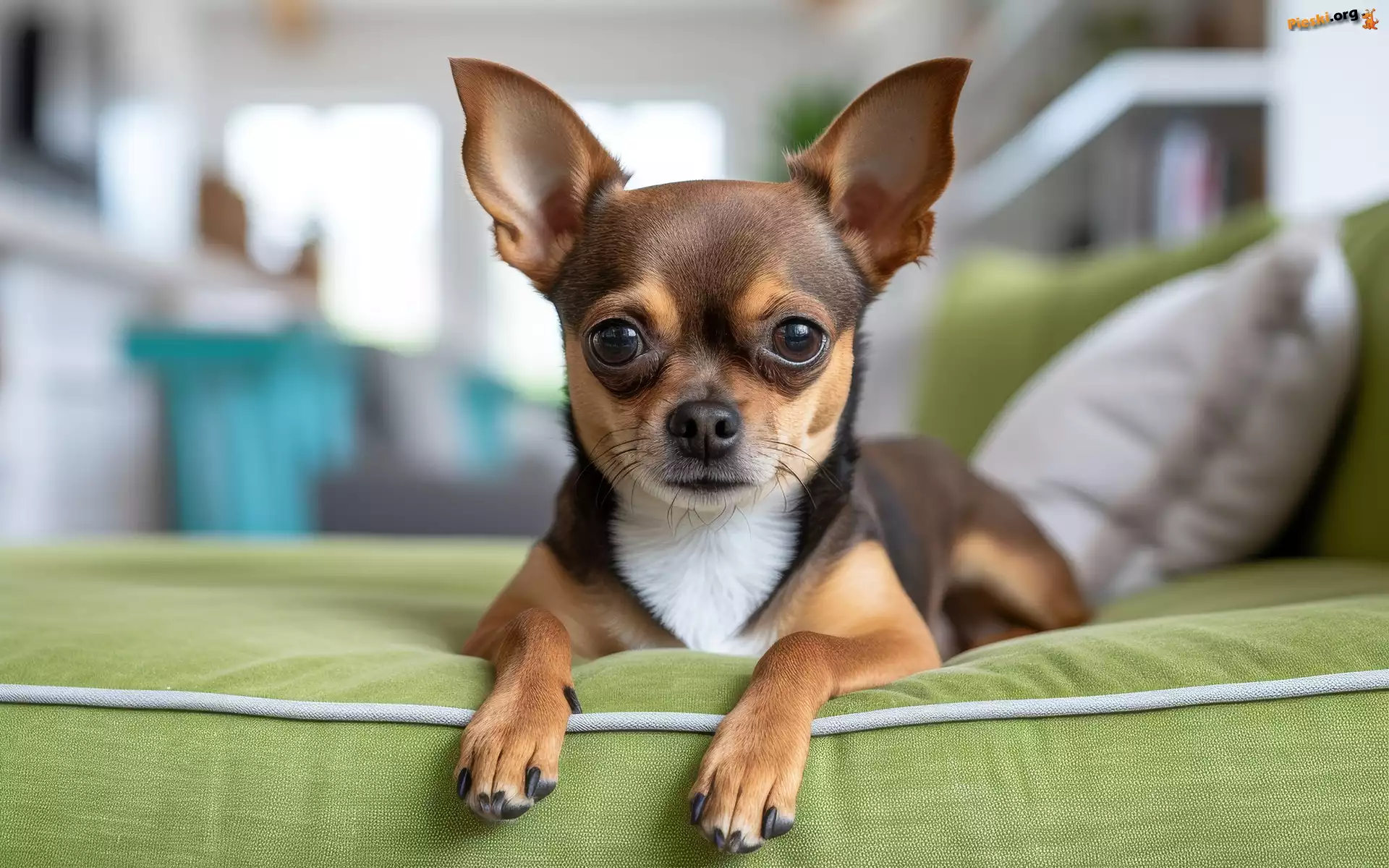 Zielona, Grafika Chihuahua krótkowłosa, Chihuahua krótkowłosa, Kanapa, Pies, Pieski