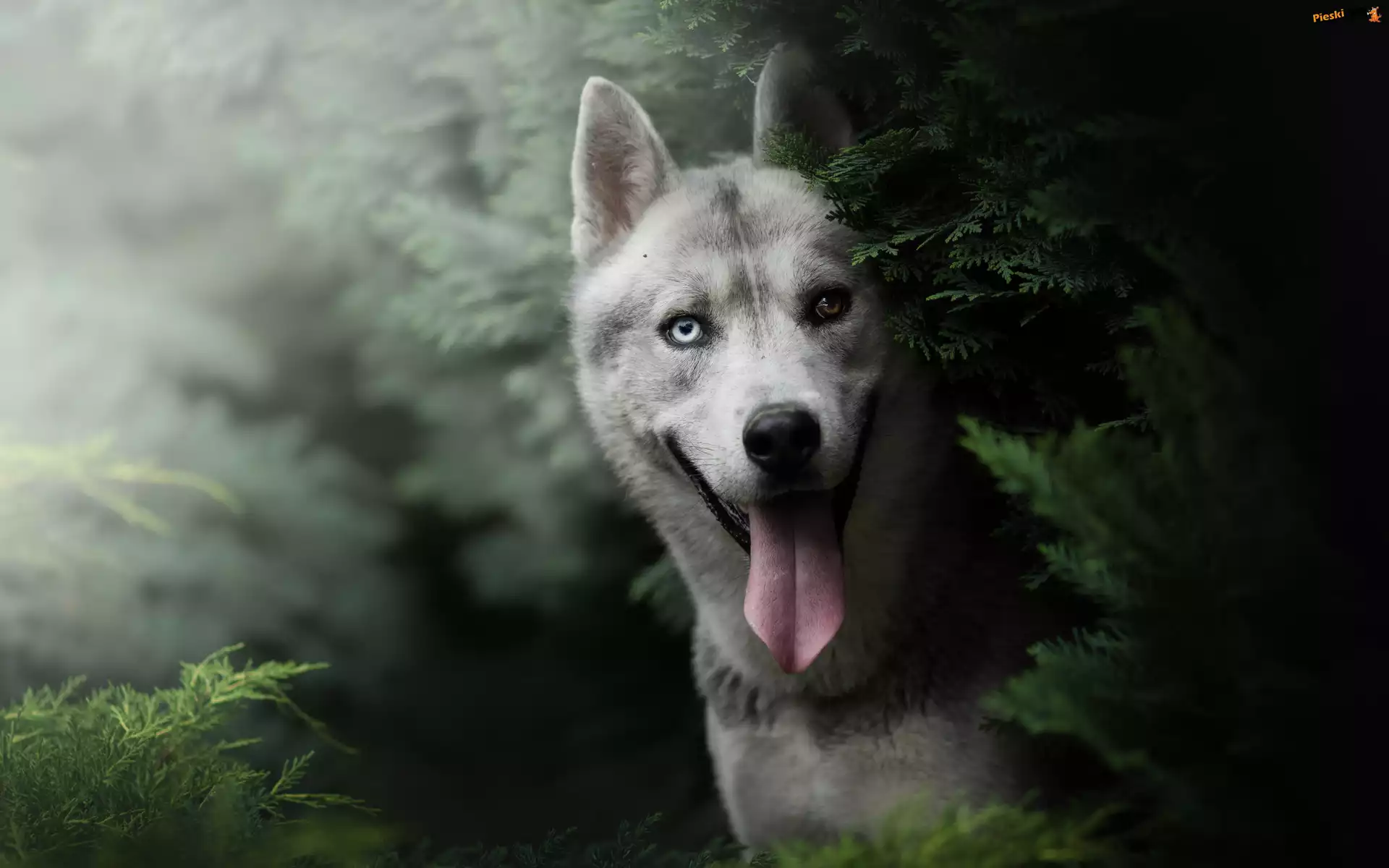 Pies, Siberian husky, Zarośla