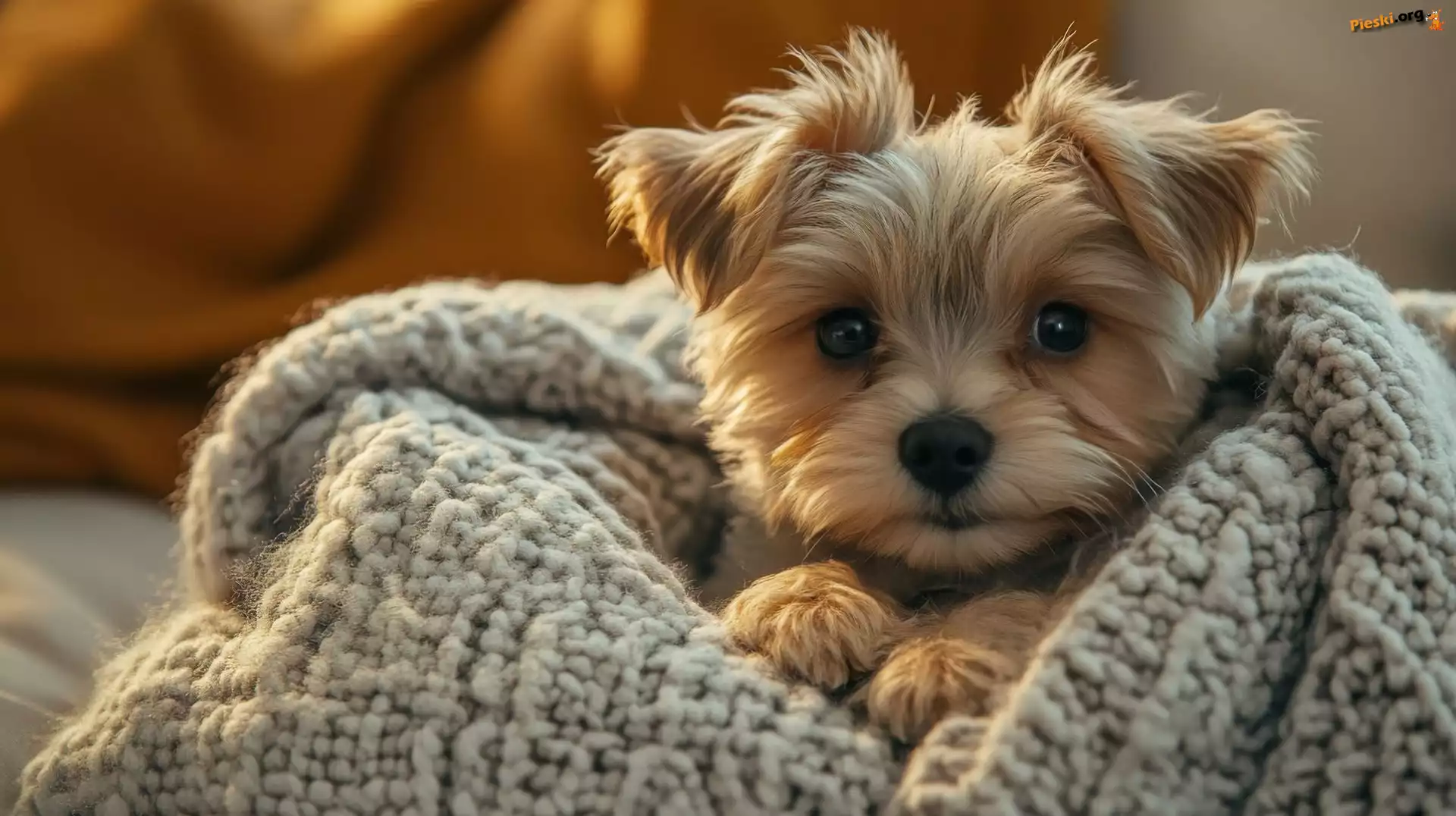 Yorkshire terrier, Koc, Pies, Spojrzenie, Szczeniak, Pieski