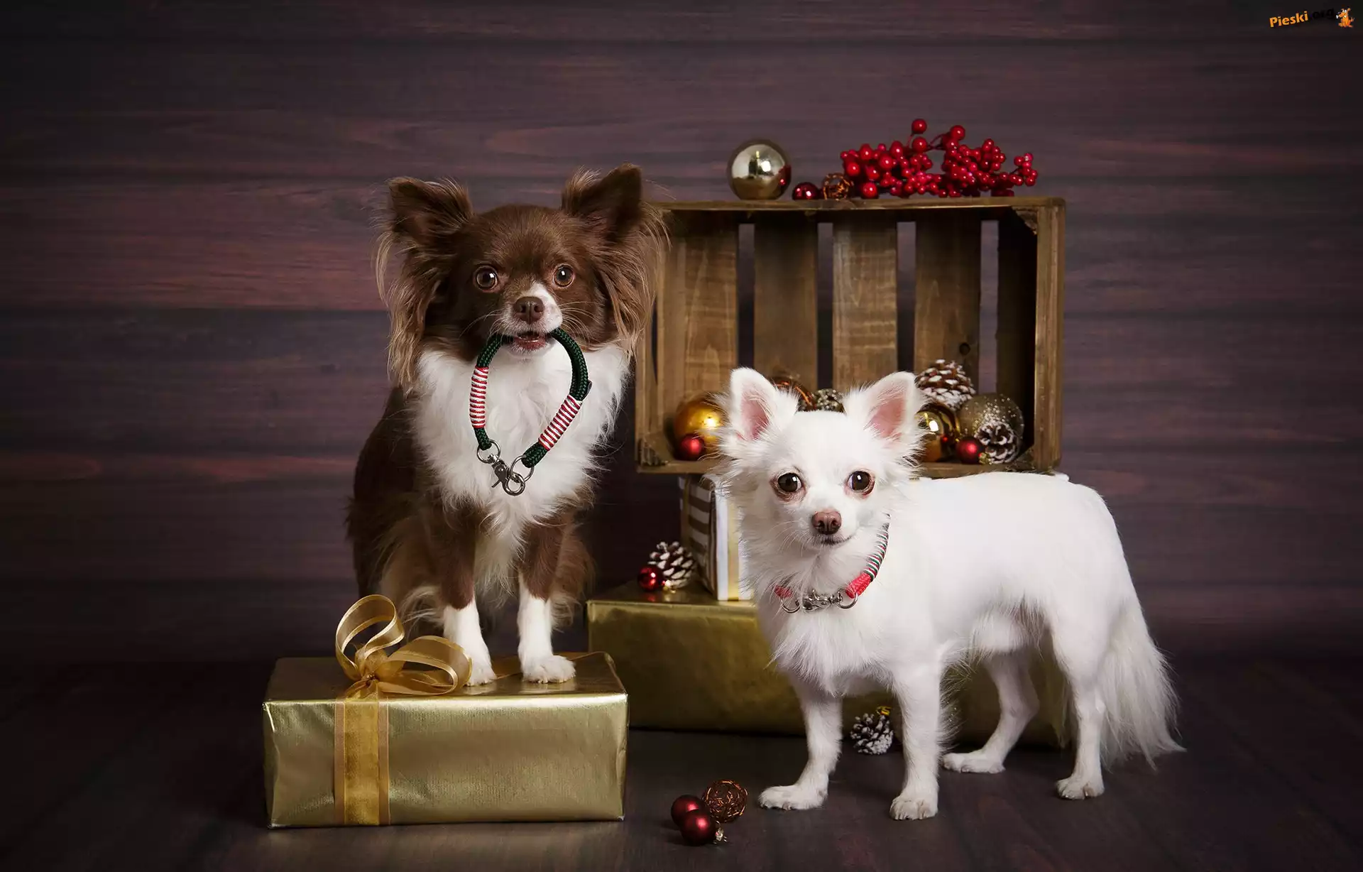 Prezenty, Psy, Dwa, Chihuahua długowłosa, Bombki, Pieski