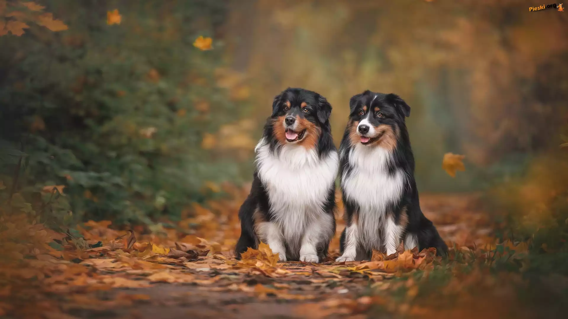 Owczarki australijskie, Suche, Psy, Liście, Dwa