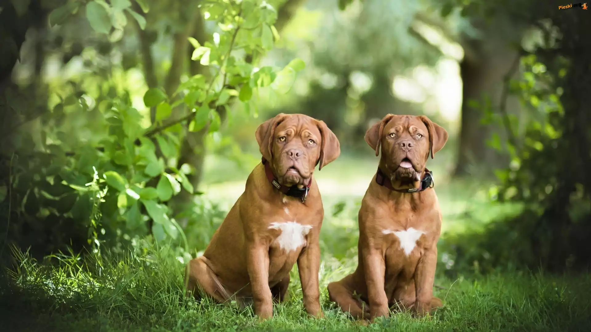 Las, Psy, Dwa, Dog de Bordeaux, Zieleń, Pieski