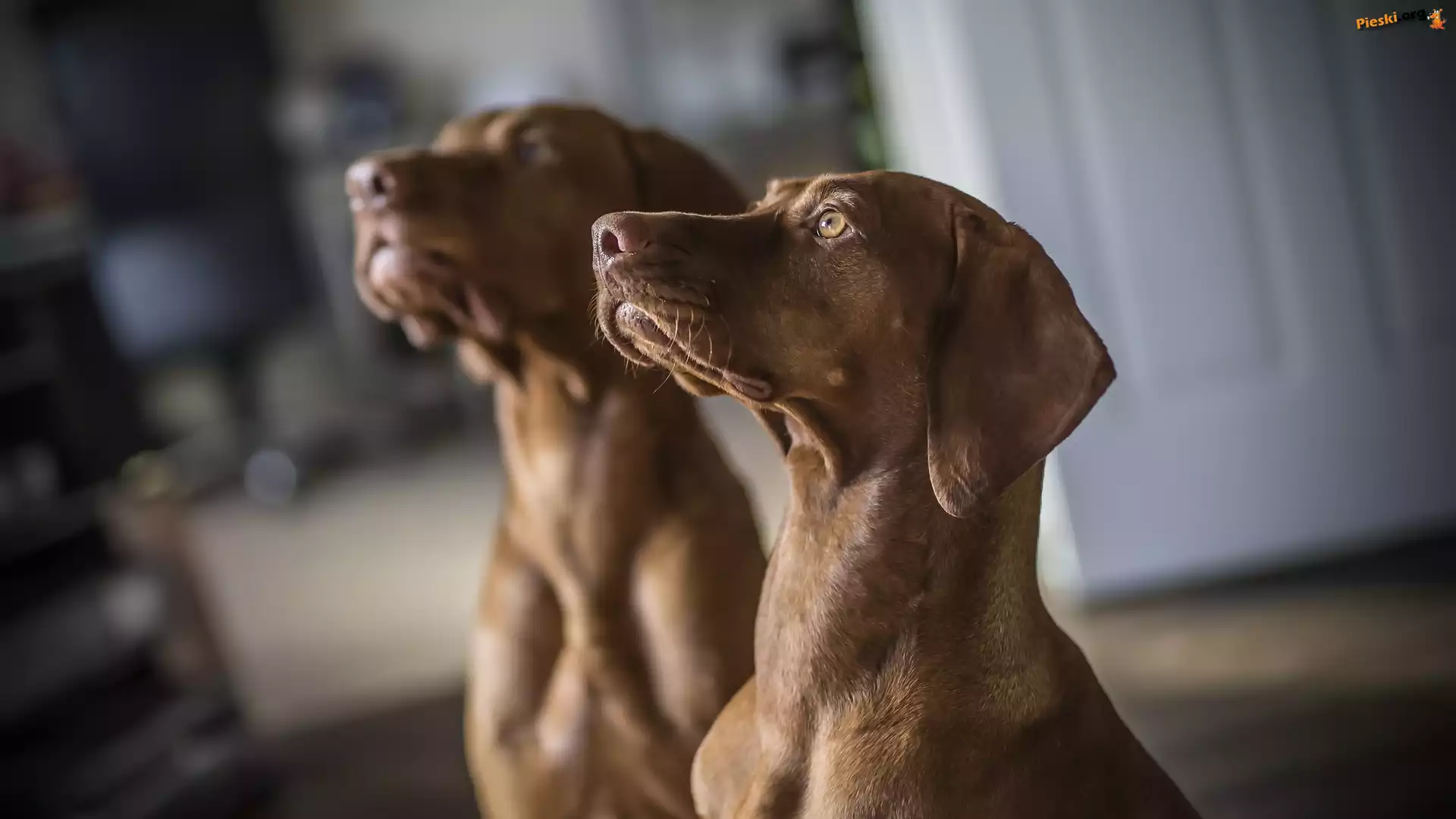 Spojrzenie, Psy, Dwa, Wyżeł węgierski krótkowłosy, Rozmyte Tło