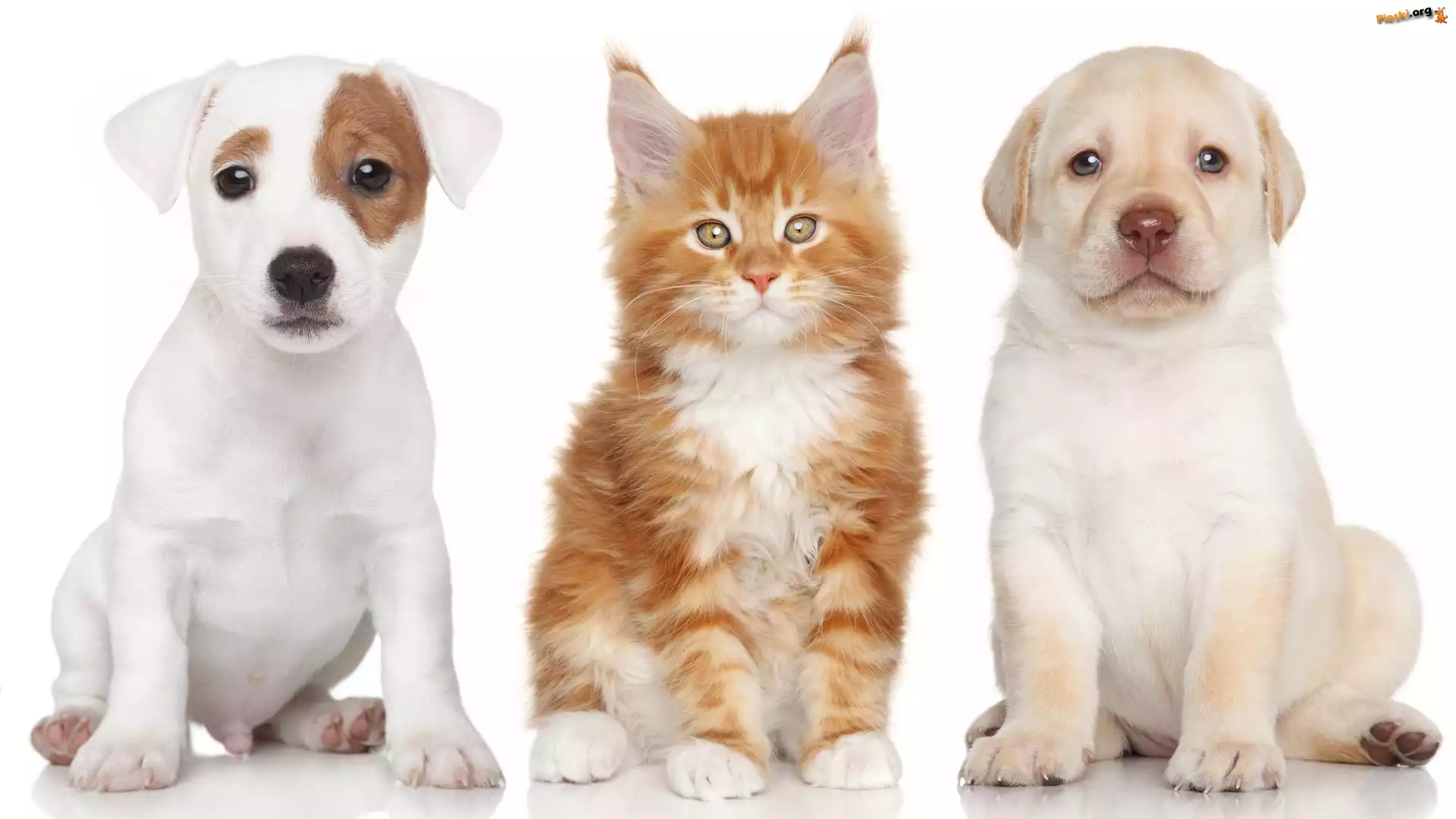 Maine Coon, Jack Russell Terrier, Pies, Kot, Labrador Retriever, Pieski