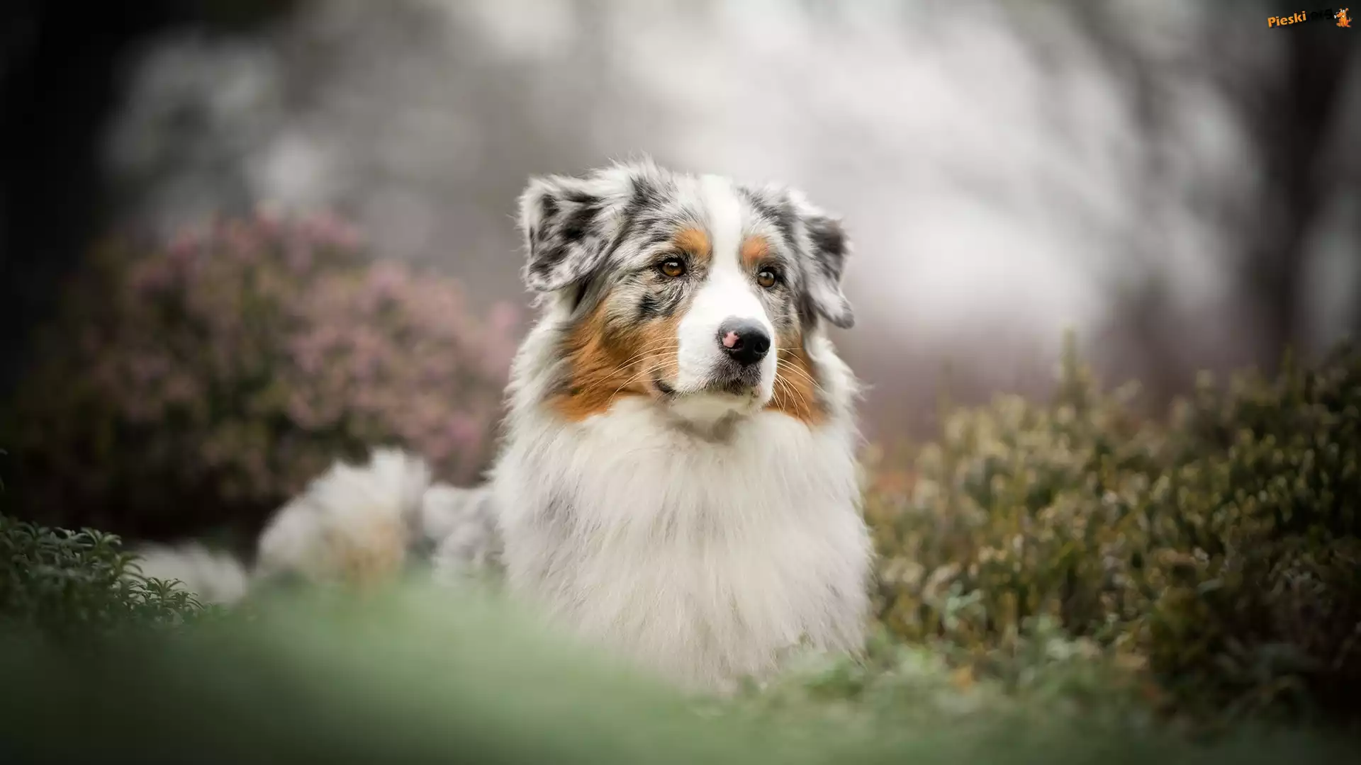 Rośliny, Owczarek australijski, Pies, Mordka, Bokeh, Pieski