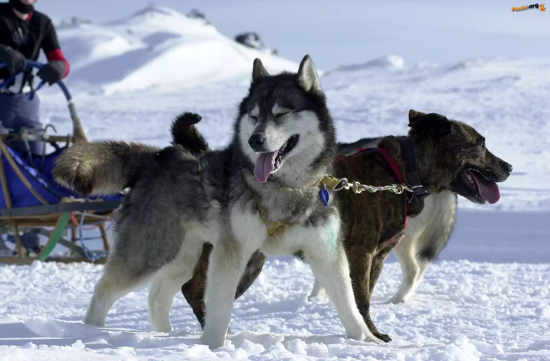 Siberian Husky, śnieg, sanie