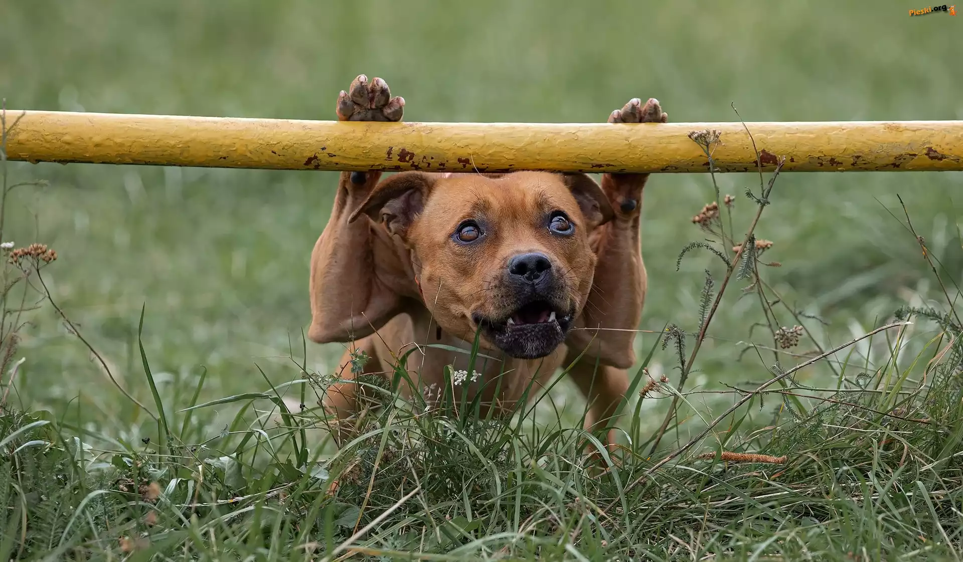 Trawa, Staffordshire Bull terrier, Pies