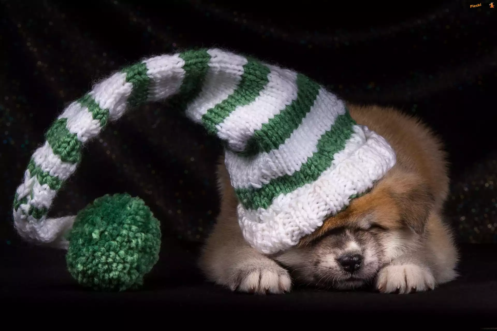 Szczeniaczek, Akita Japoński, Czapka, Pieski
