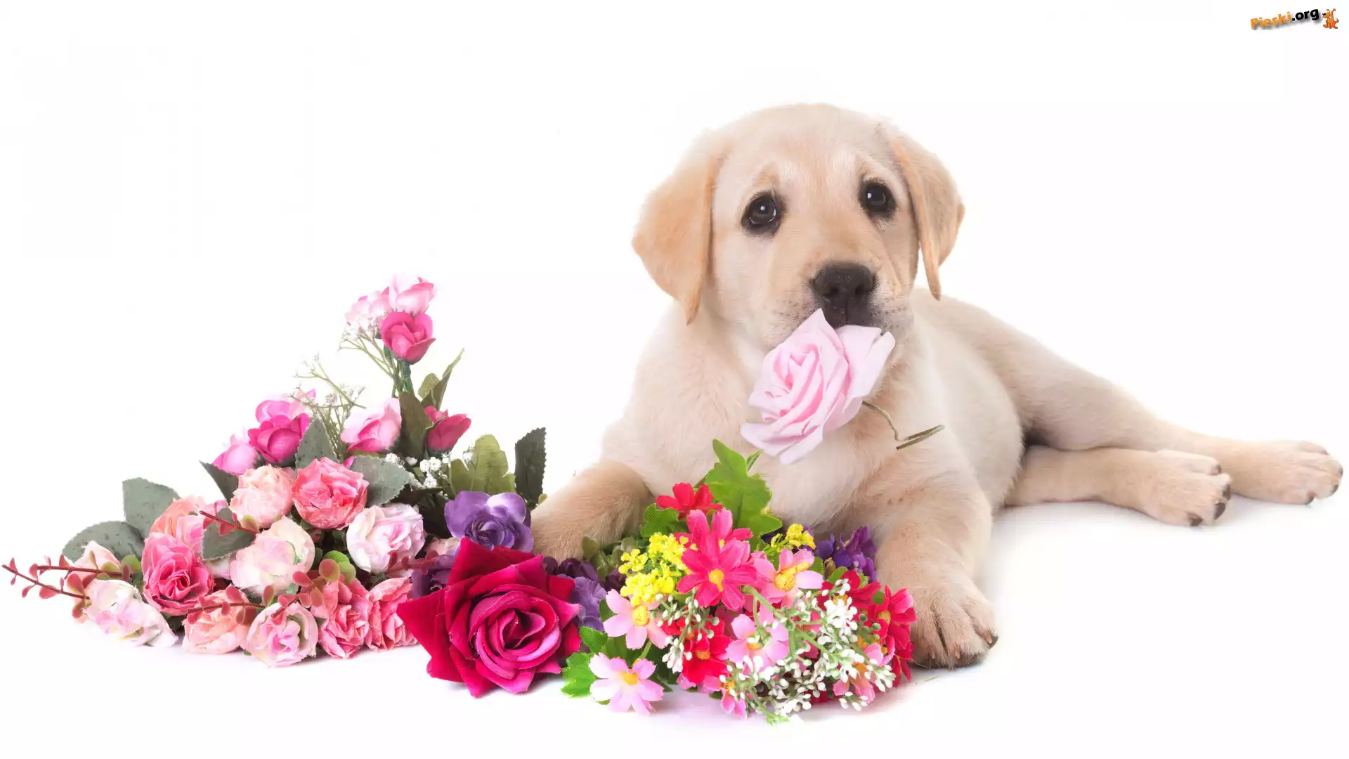Szczeniak, Kwiaty, Pies, Labrador retriever, Pieski