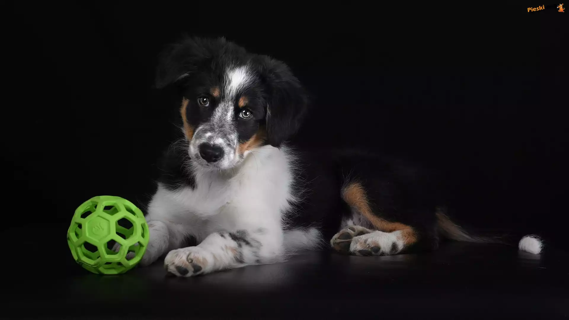 Gryzak, Szczeniak, Czarne, Zabawka, Owczarek australijski, Piłka, Tło, Pieski