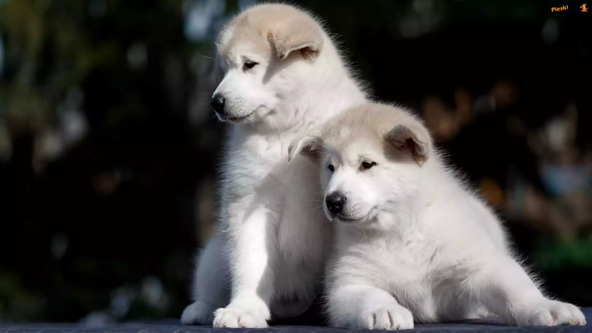 Szczeniaki, Dwa, Białe, Akita inu