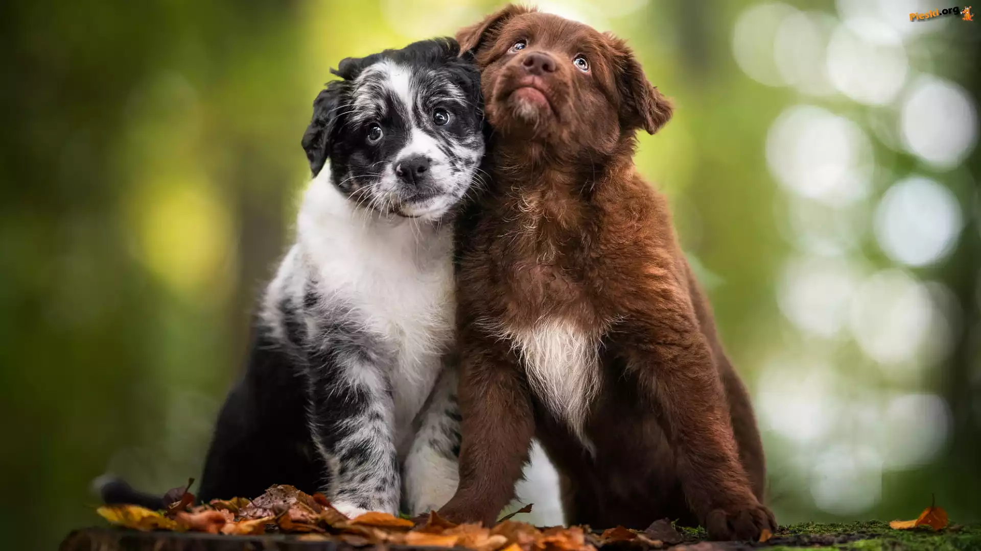 Szczeniaki, Psy, Dwa, Owczarki australijskie, Pieski