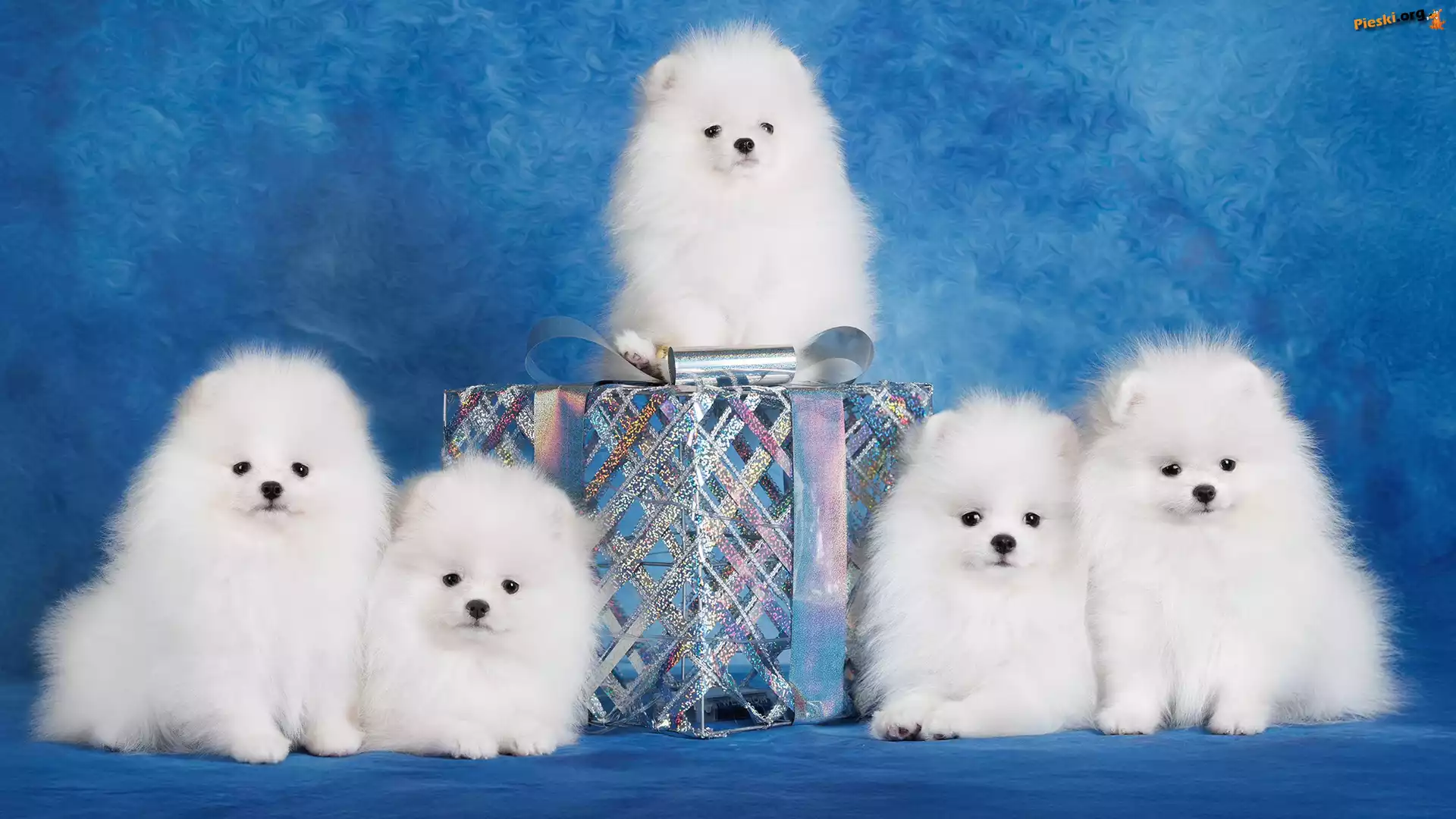 Białe, Prezent, Psy, Szpice miniaturowe, Szczenięta
