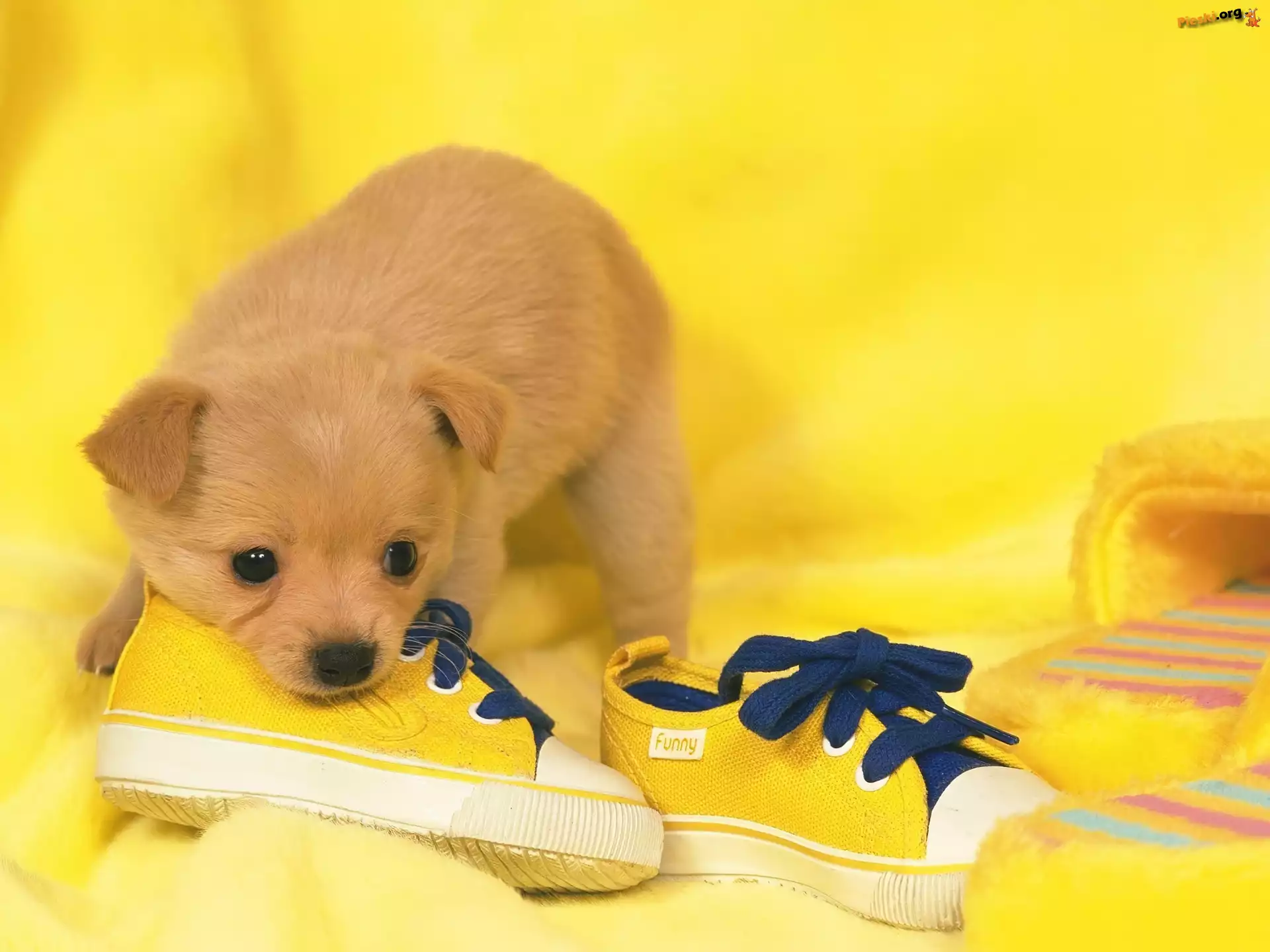 Trampki, Psiak, Mały, Żółte, Kapcie, Pieski