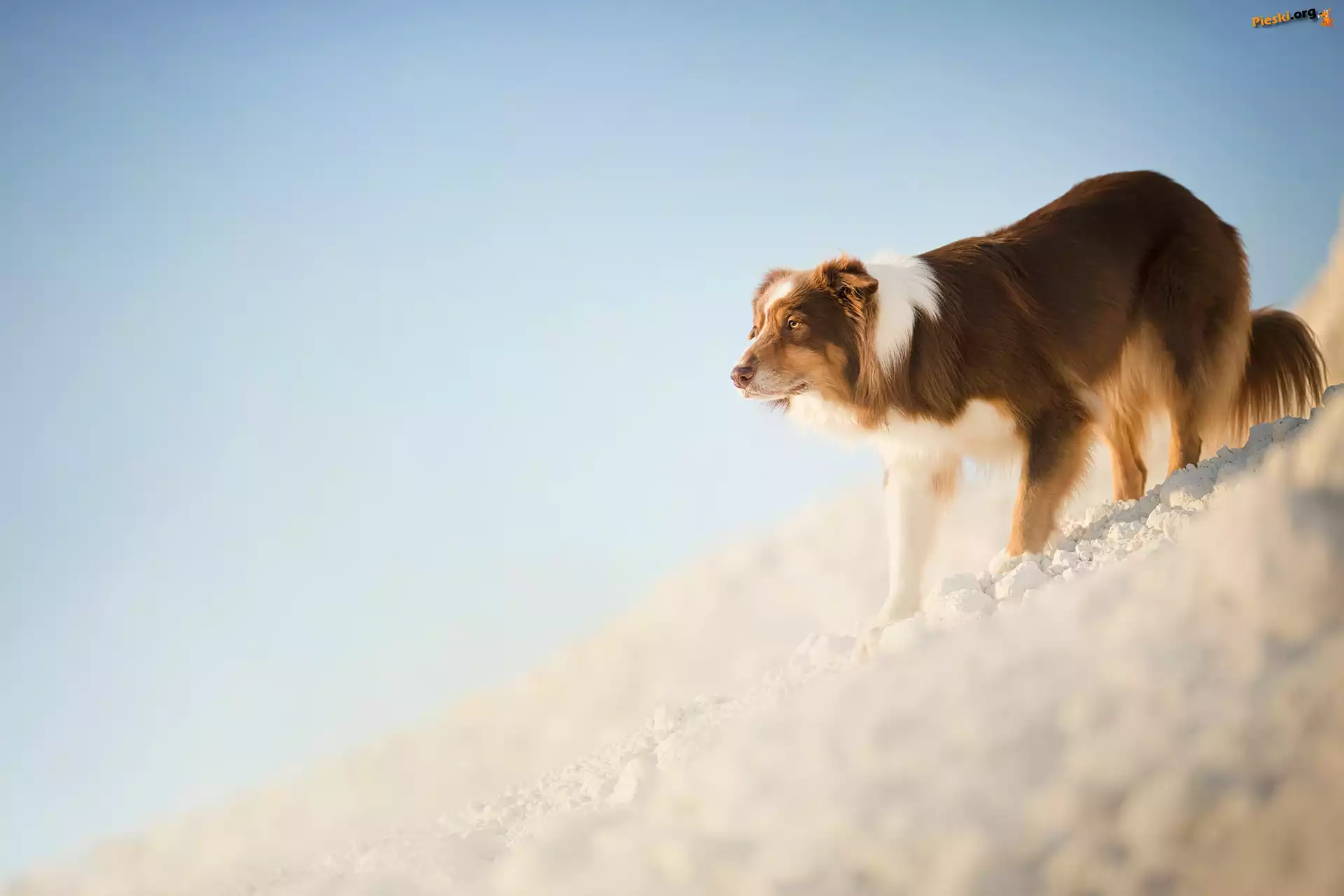 Śnieg, Zima, Pies, Owczarek australijski, Pieski