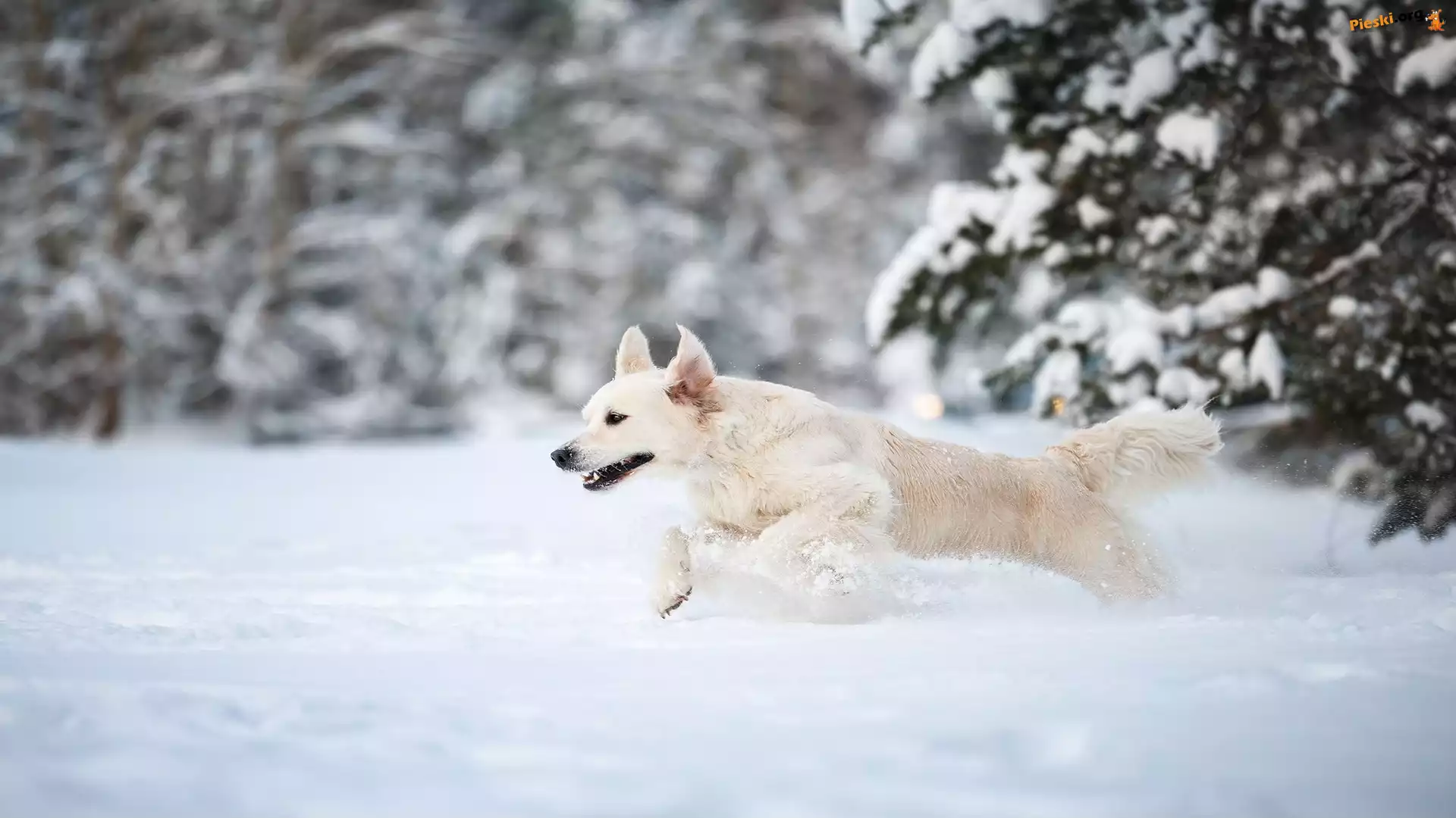Śnieg, Golden retriever, Zima